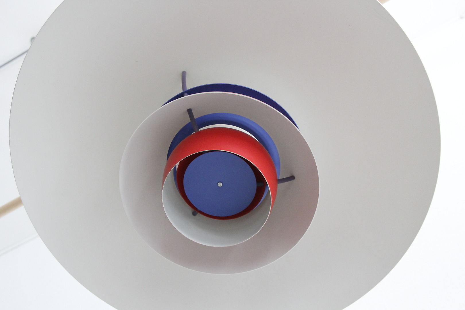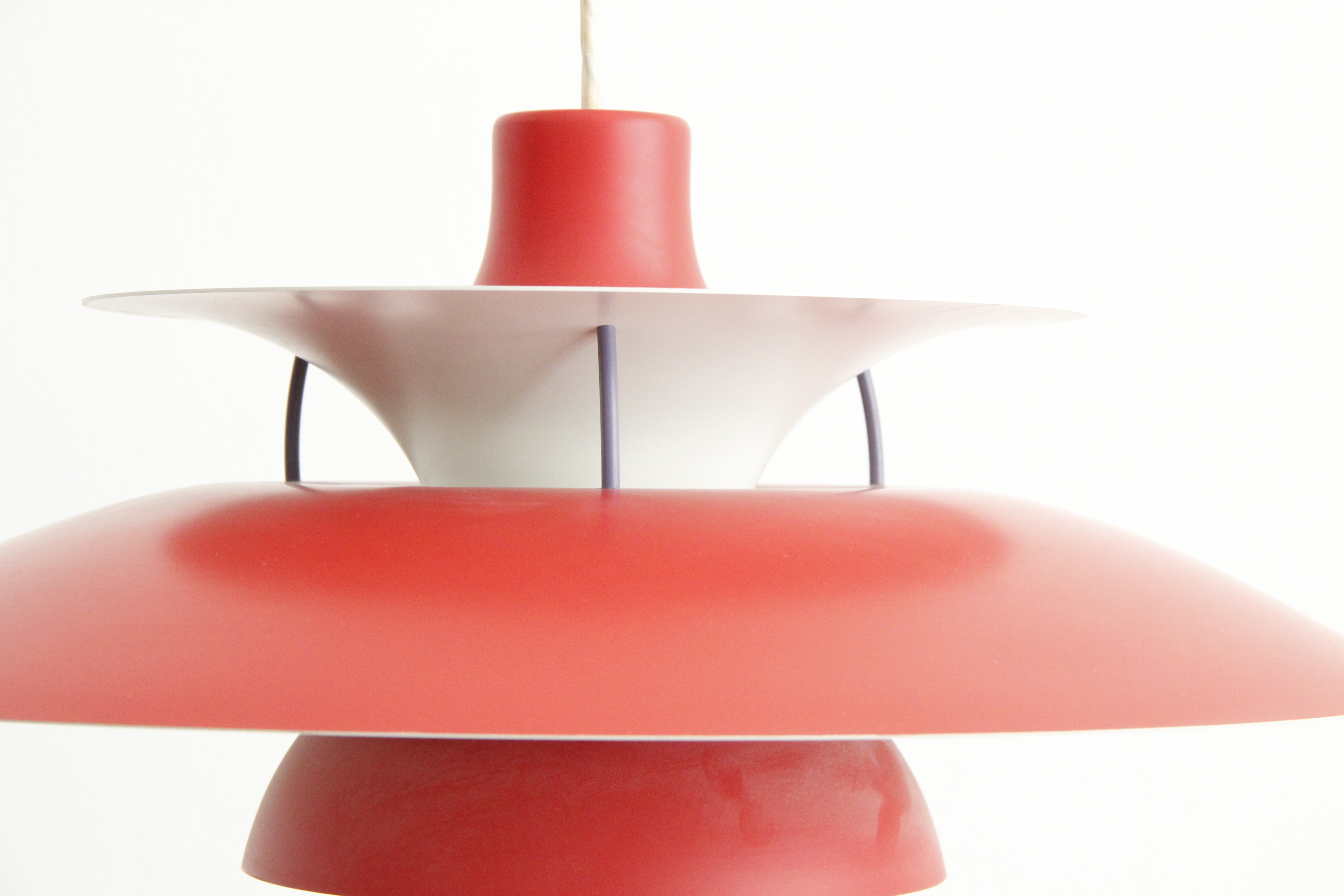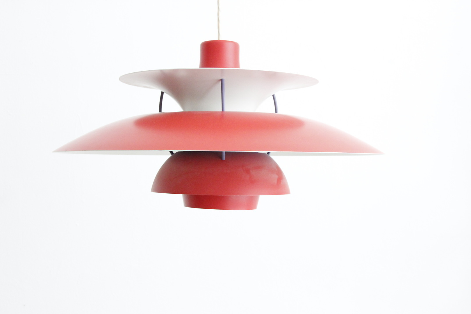 430383. TAKLAMPA, POUL HENNINGSEN. PH 5 lampa i rött.