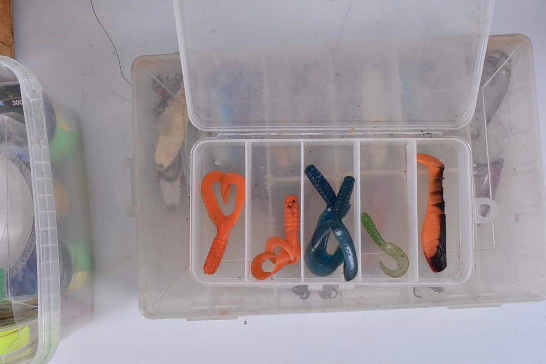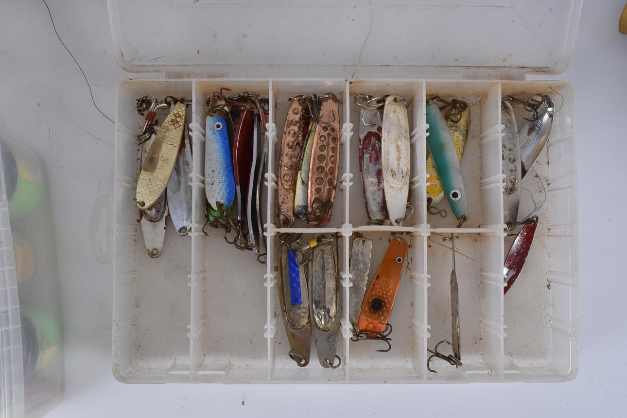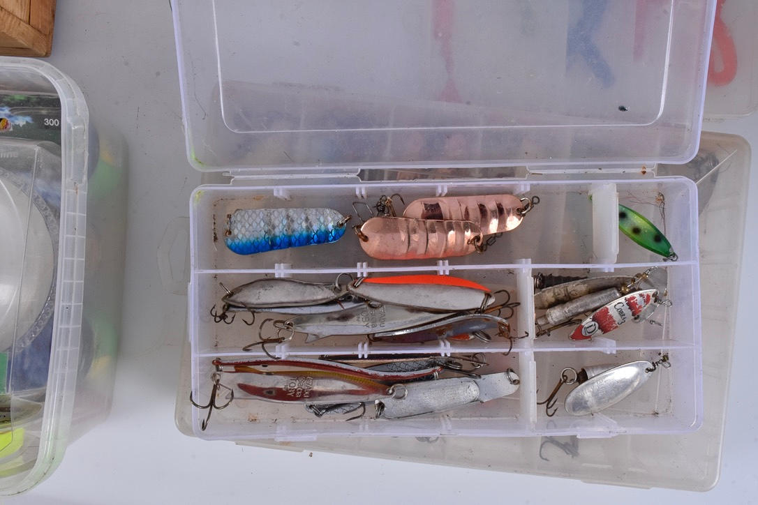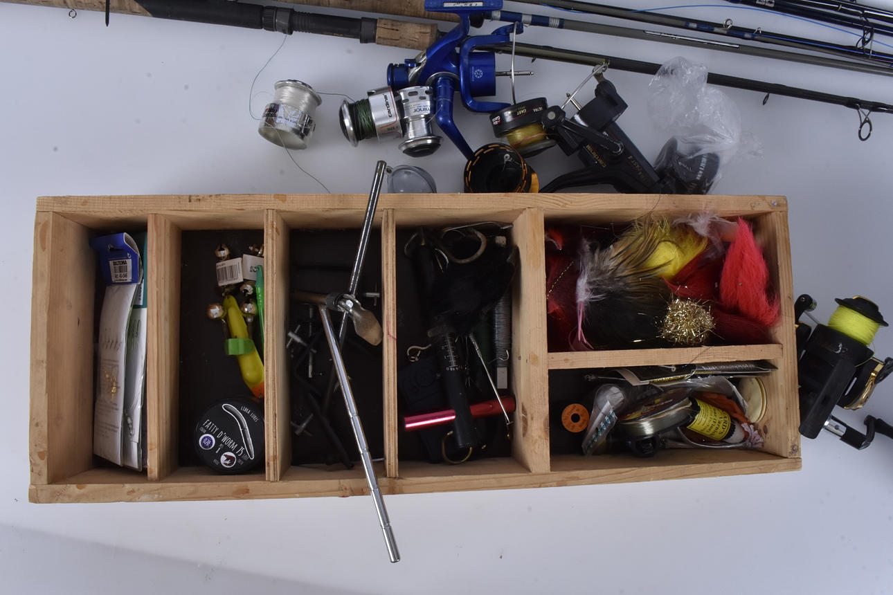 Fiskespö, 6 st, några med fiskerullar, bl. a,