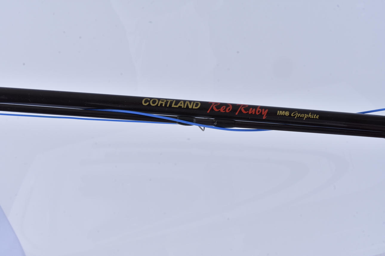 fiskespö, Cortland, Red Ruby, IM6, medföljer fiskerulle, Diplomat 56, längd 300 cm.