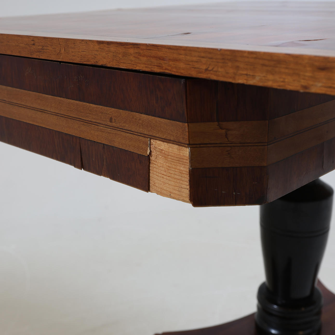 Slitage. Repor och fläckar. Större fanerskador. Torrspricka invändigt.