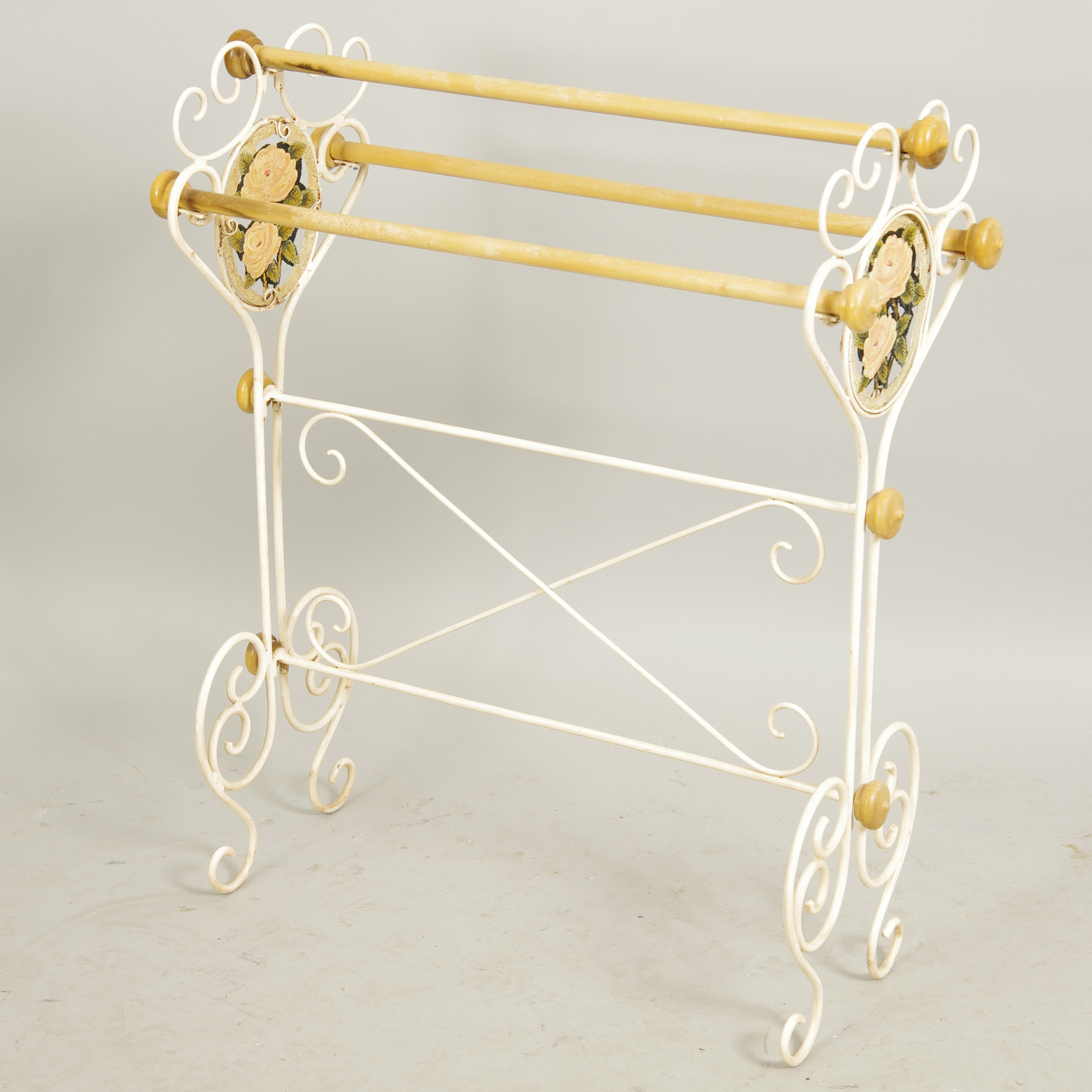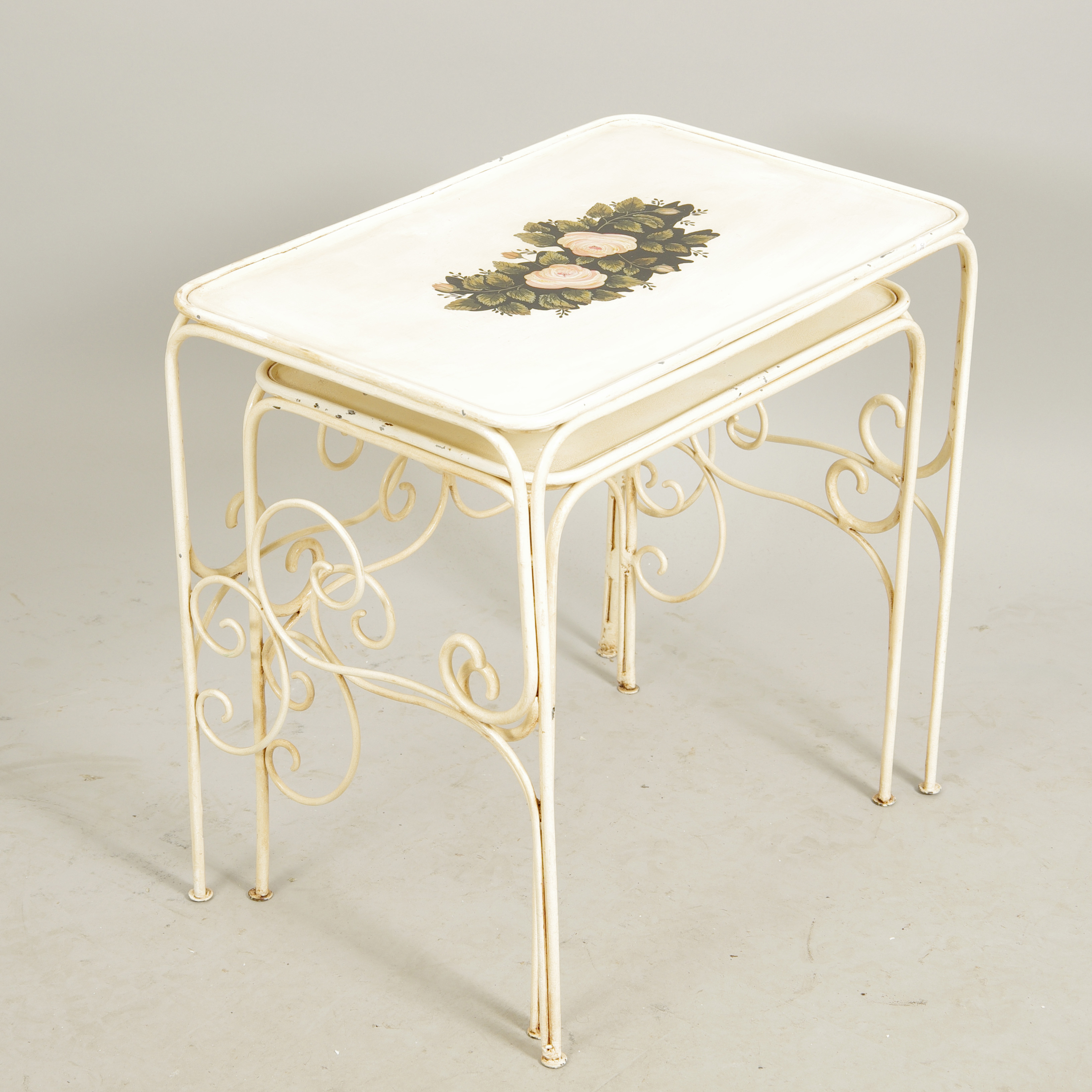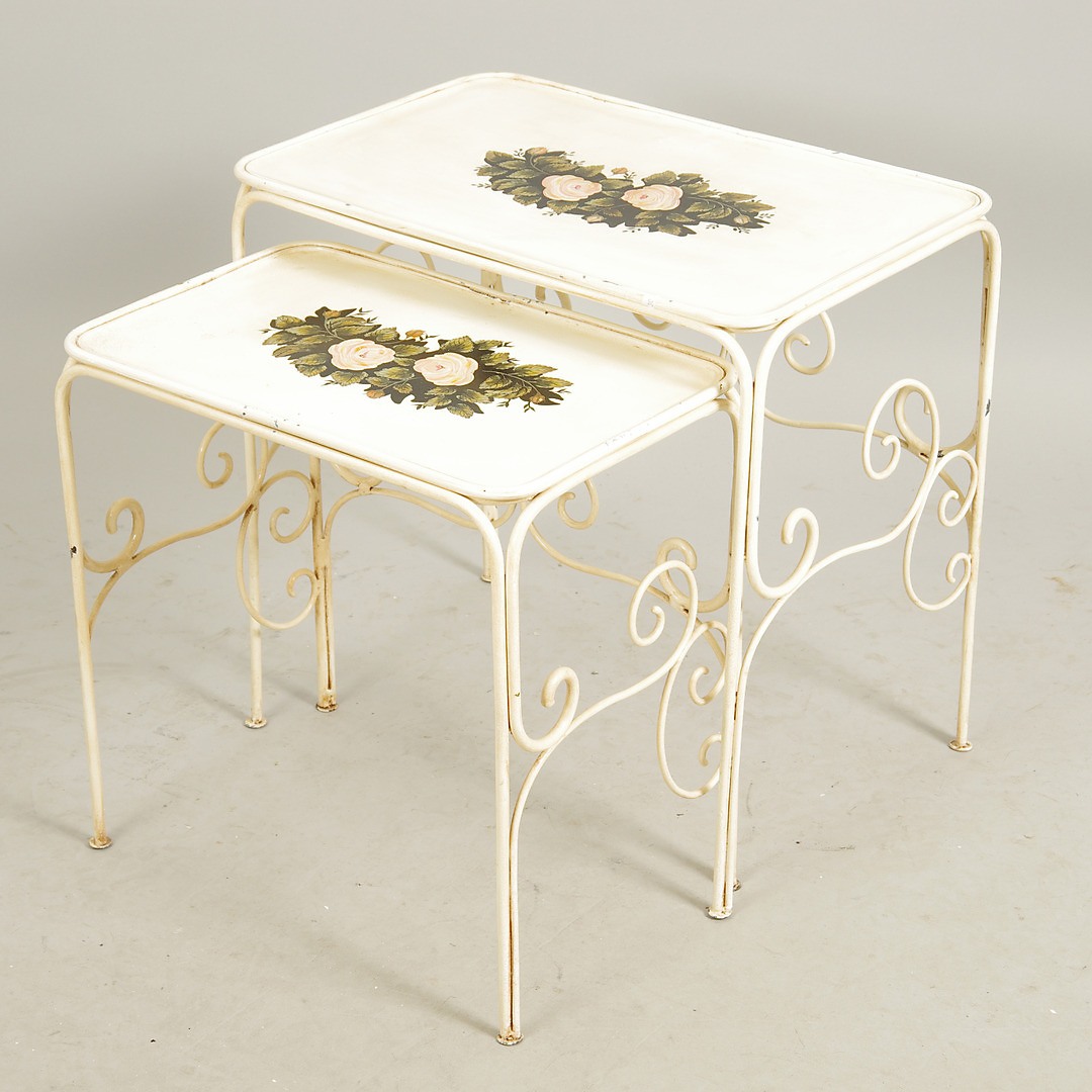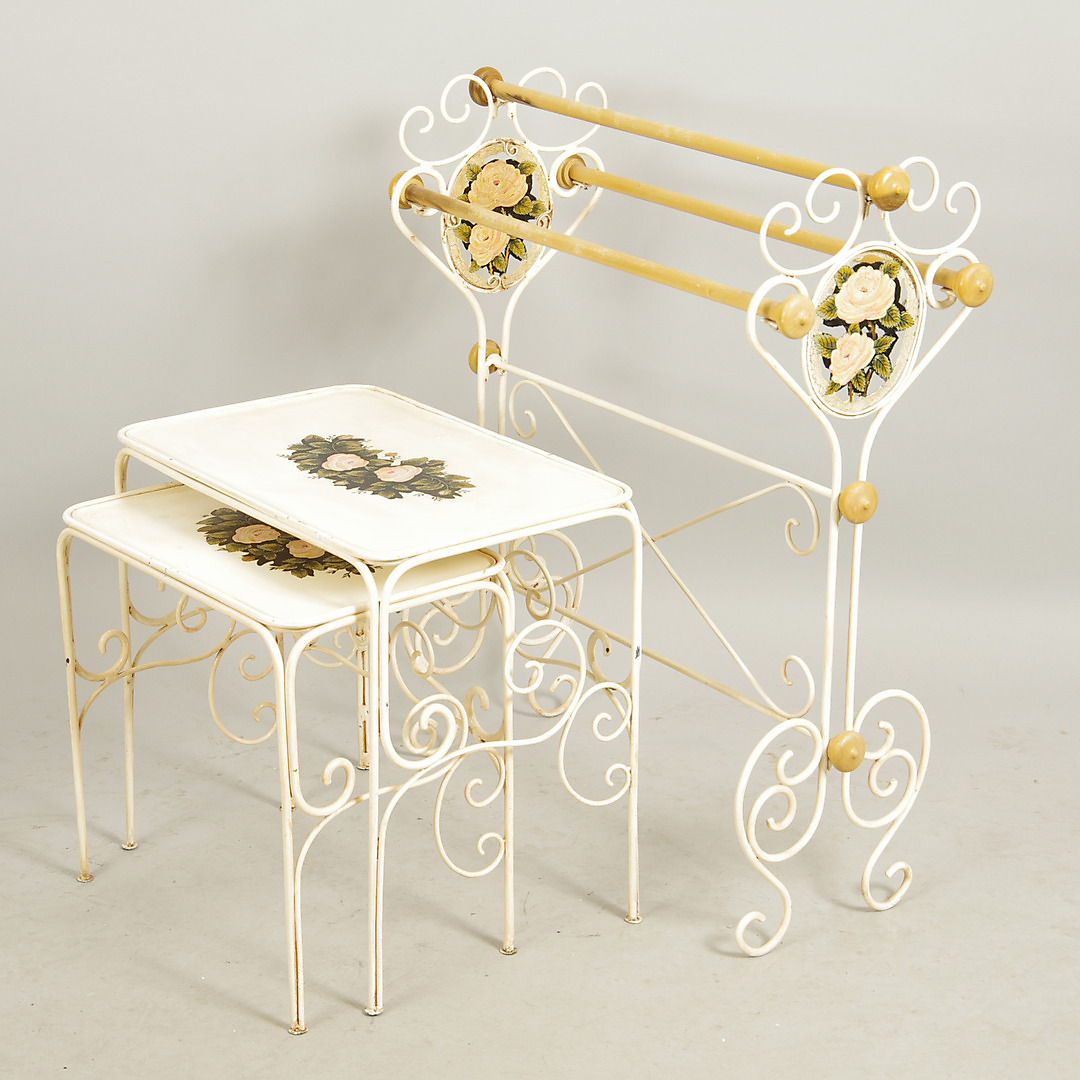 430562. SATSBORD SAMT STÄLL, dekormålad smide.