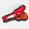 Ålder- och bruksrelaterat slitage, hals med något utstickande bandstavar och lackbortfall kring dessa, fodral saknar handtag.