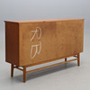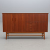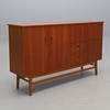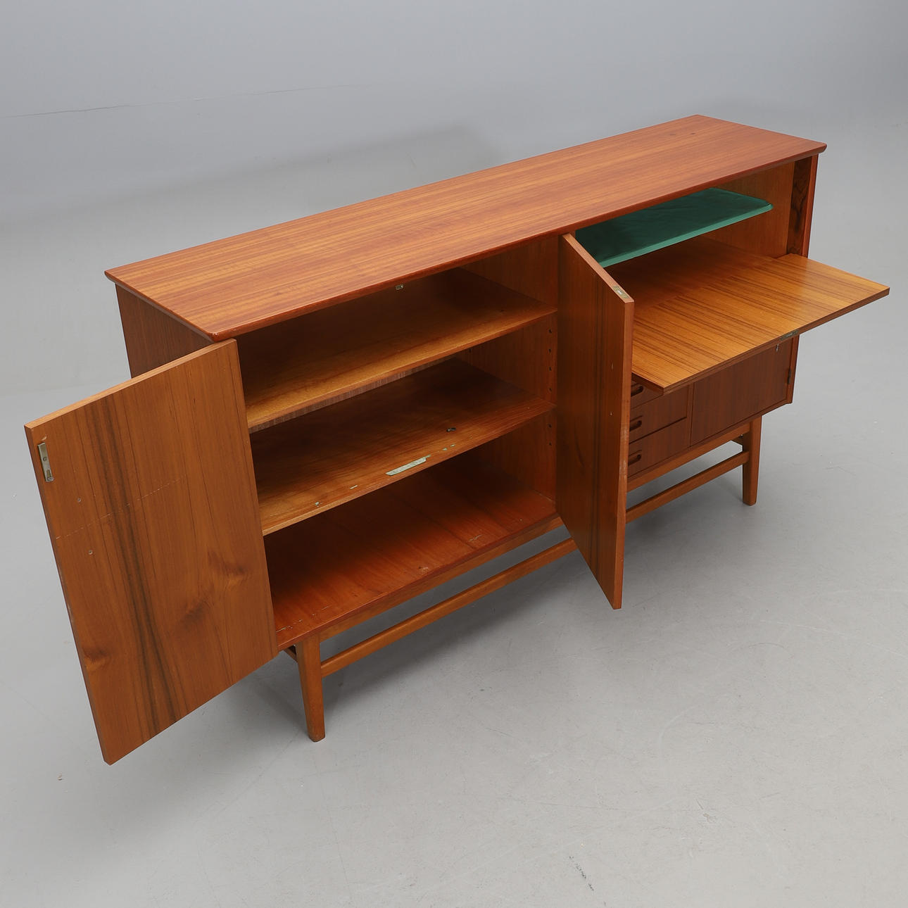 Teak. I fronten två större dörrar, en utfällbar lucka, tre lådor och en mindre dörr. Bredd 180, djup 45, höjd 105 cm.