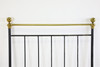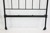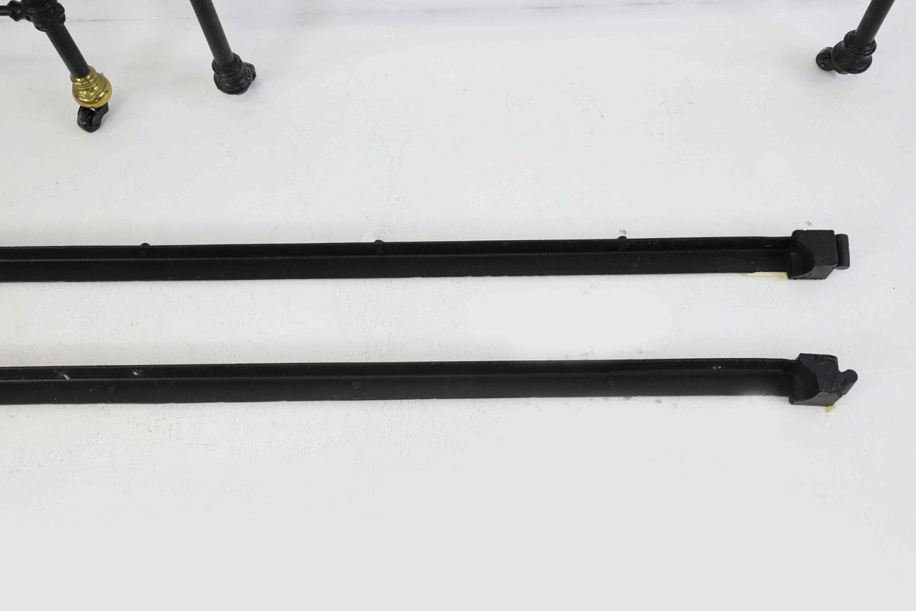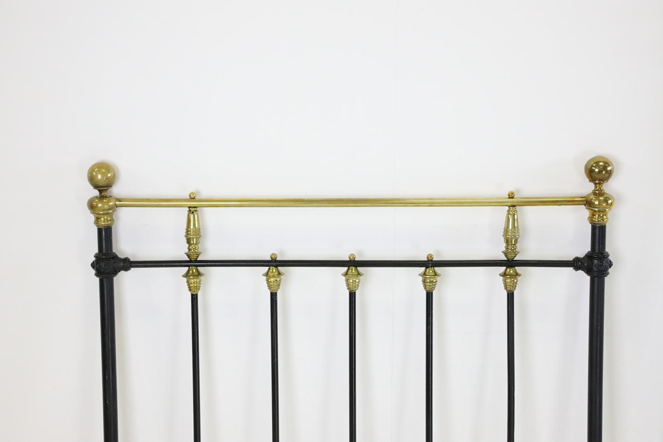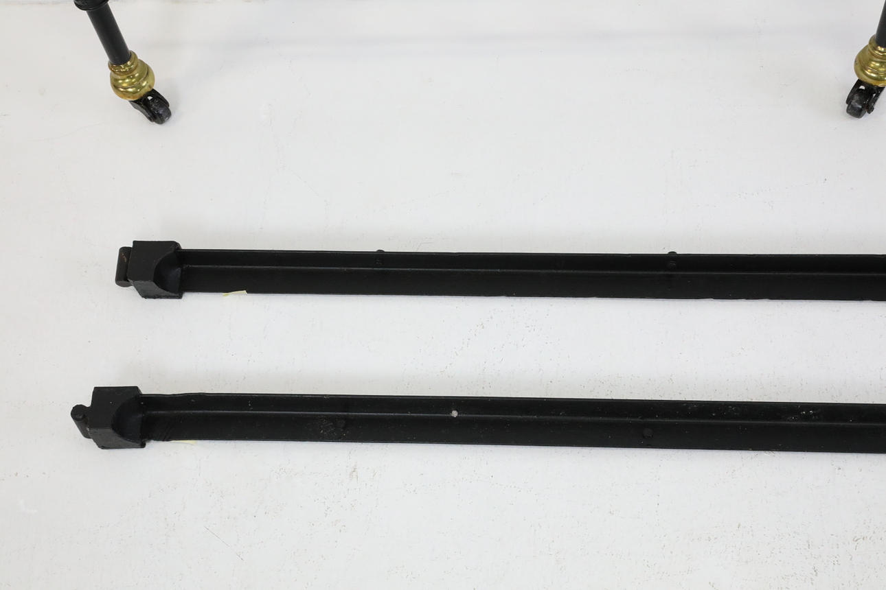 På hjultrissor. Höjd huvudgavel 140 cm Höjd fotgavel 113 cm Bredd 90 cm Längd ca 172 cm.