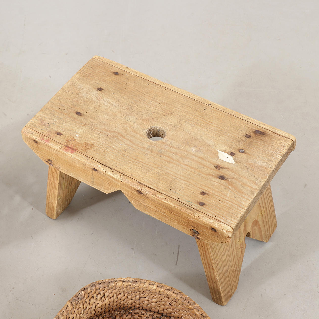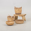 Pall mått 39 x 22, höjd 24 cm. Ostkorg, rotarbete, diameter 29 cm.