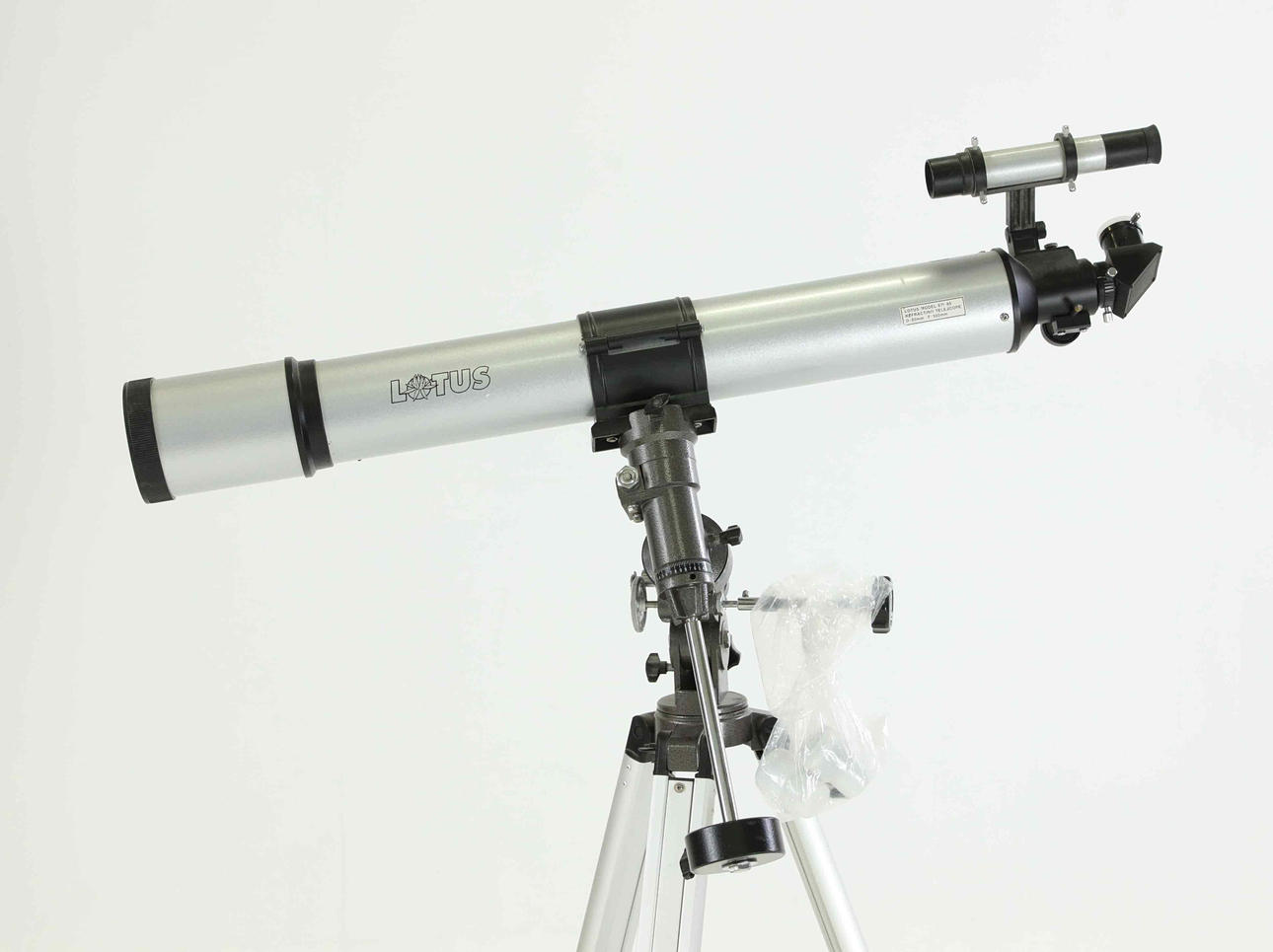 Refracting Telescope D=80 mm F=900 mm. Längd ca 90 cm, höjd ca 105, ställbart, reglerbart. 2 Ocular: K.6 mm och RK=20 mm.