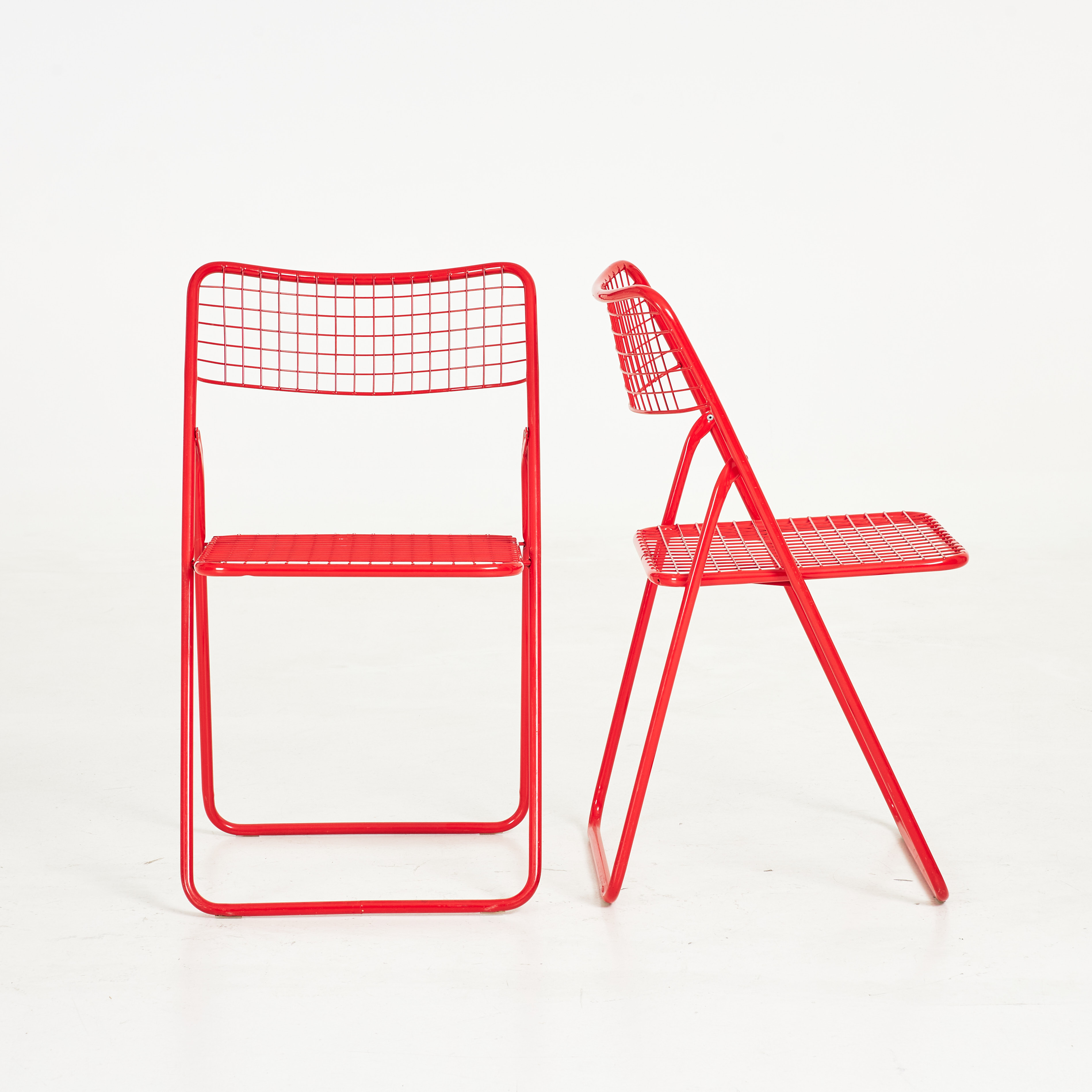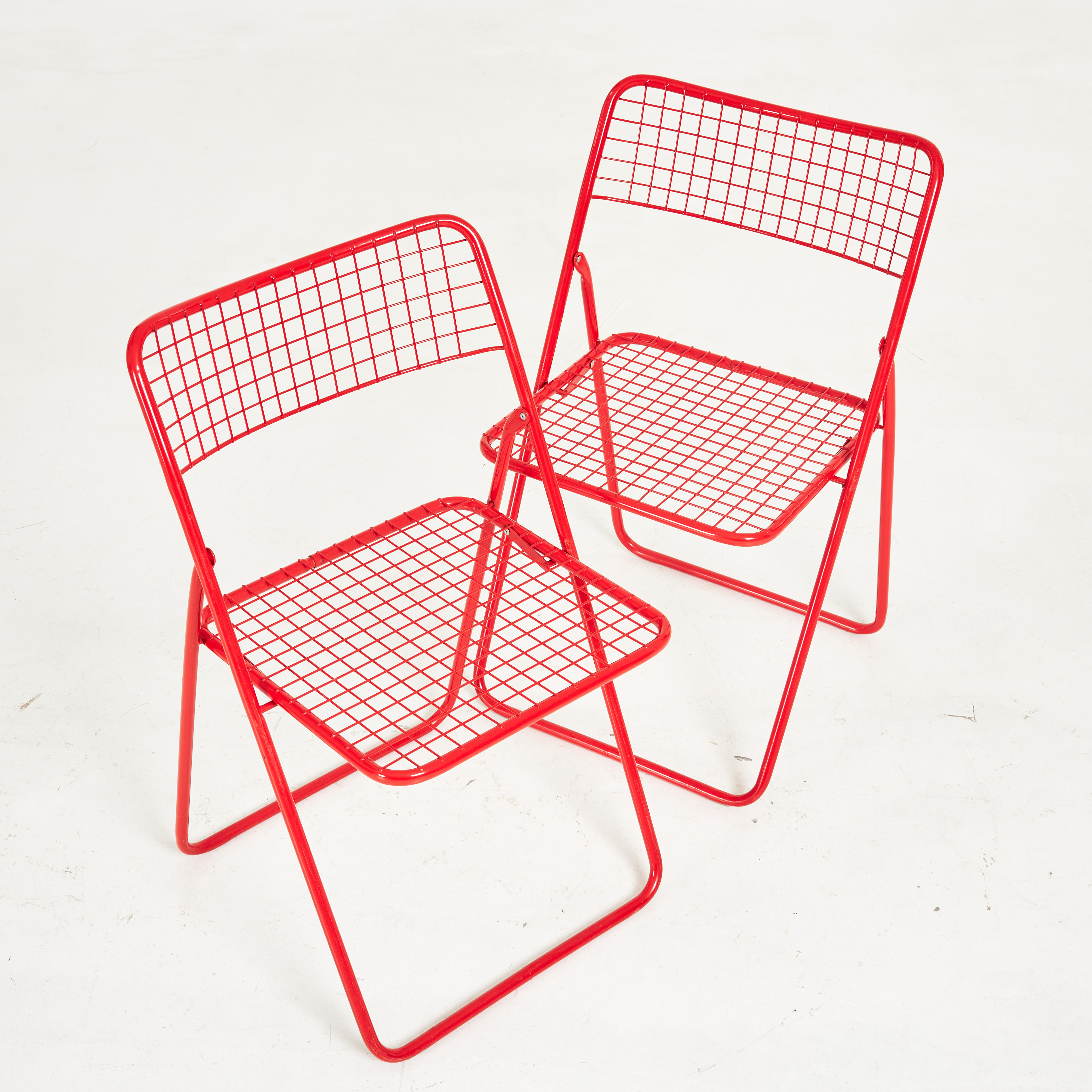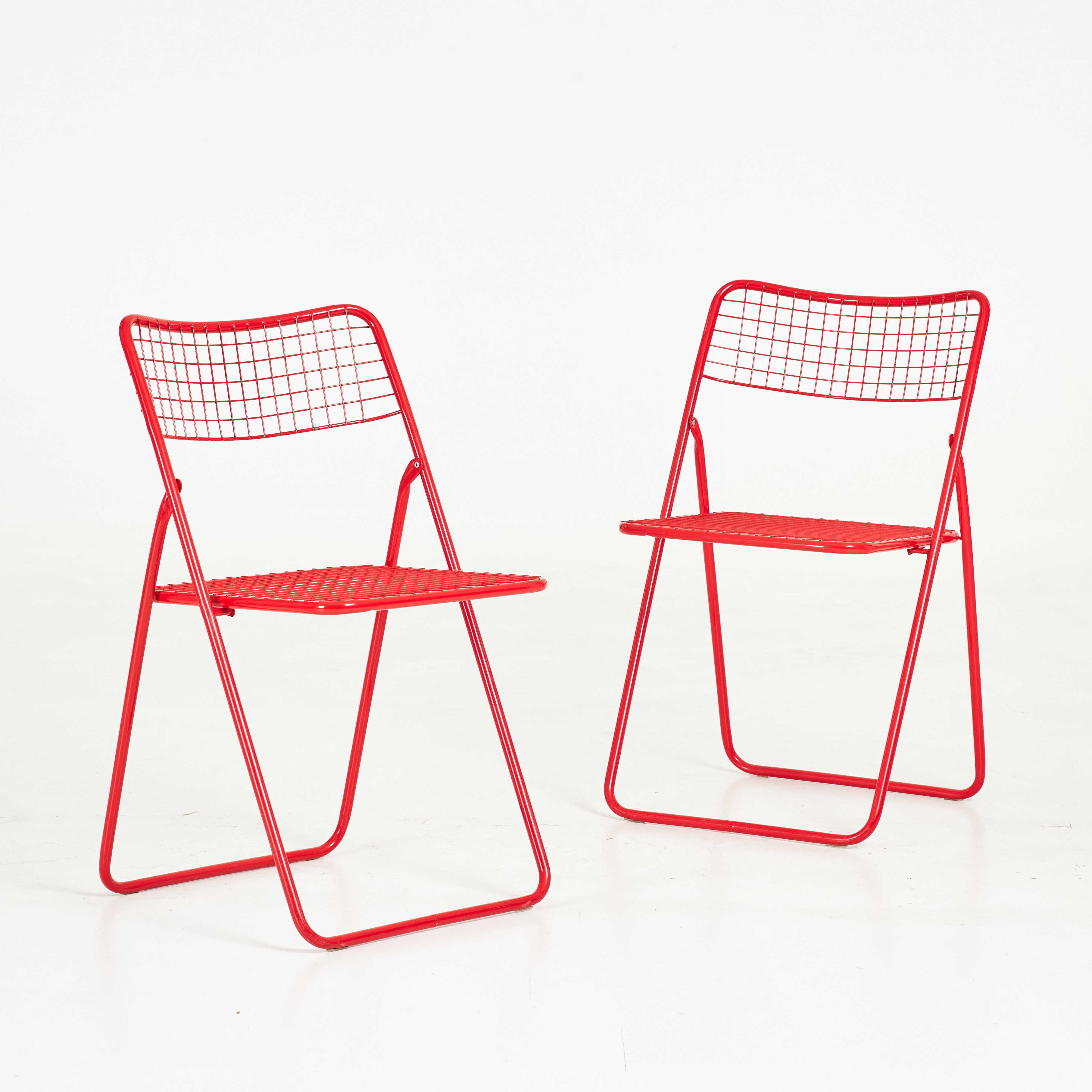 4309624. NIELS GAMMELGAARD. Fällstolar, 2 st., "Tednet", rödlackerade, för IKEA.