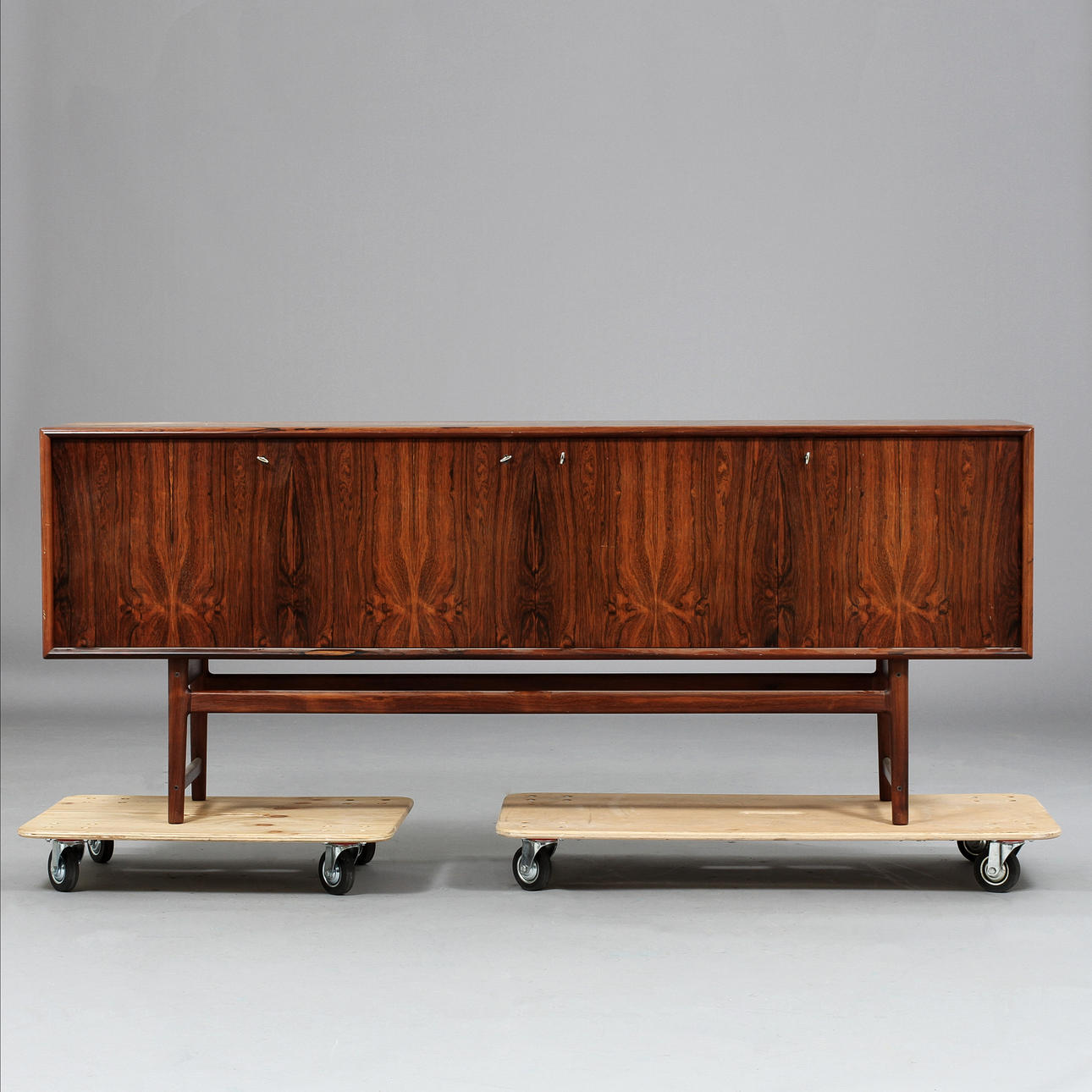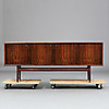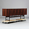 Hyllinredning bakom fyra dörrar. Längd 210, bredd 48, höjd 85 cm. Möbeln märkt med nr SJV 5131/16. CITES-intyg medföljer.