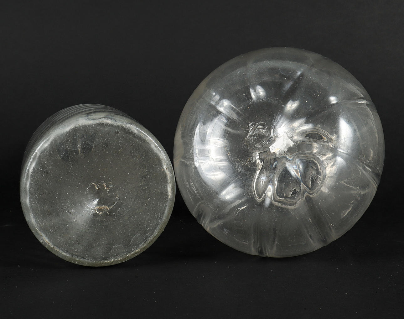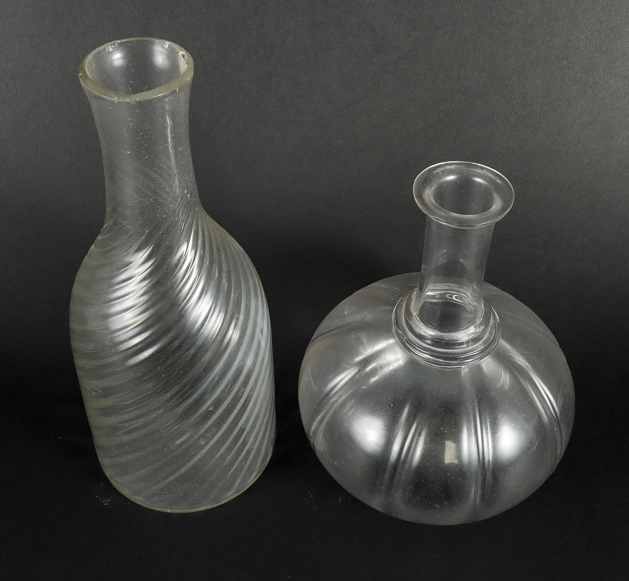 4310026. VETTENKARAFFER 2 stycken glas, 1800-tal.