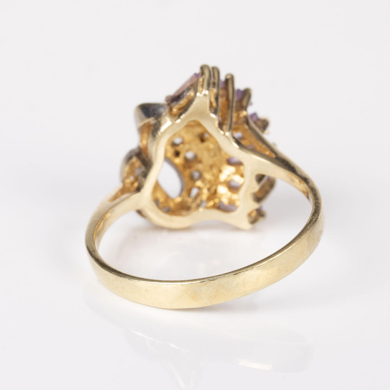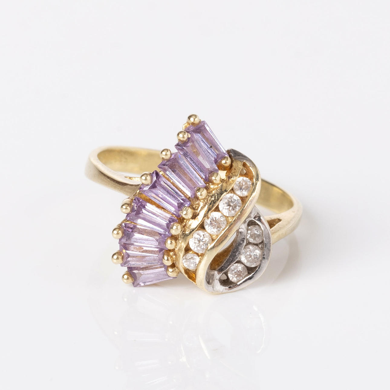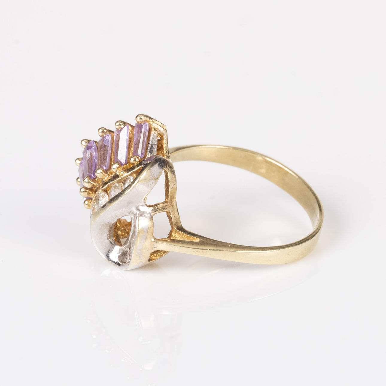 4310450. RING, 14K guld, rosa och vita stenar.