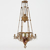 6 ljusarmar, diameter ca 56 cm, justerbar höjd, höjd på bild ca 100 cm.