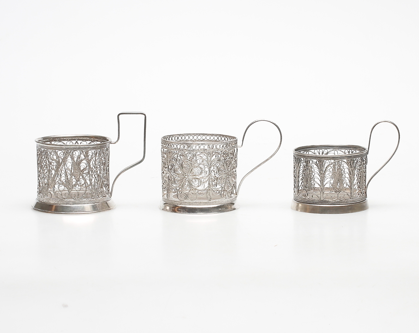 431123. TEGLASHÅLLARE, vitmetall, Ryssland, 1900-tal.