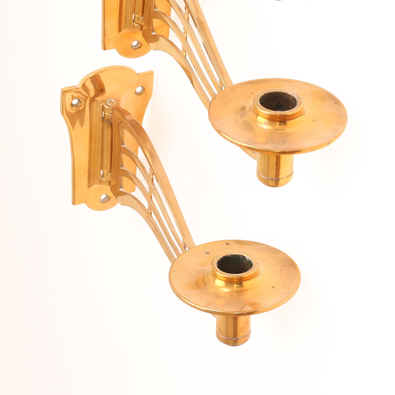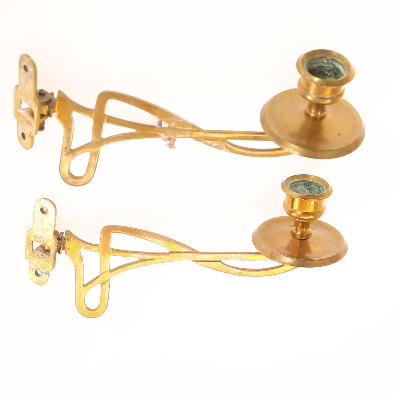 4312693. VÄGGLJUSSTAKAR, 2 par, mässing, jugend.