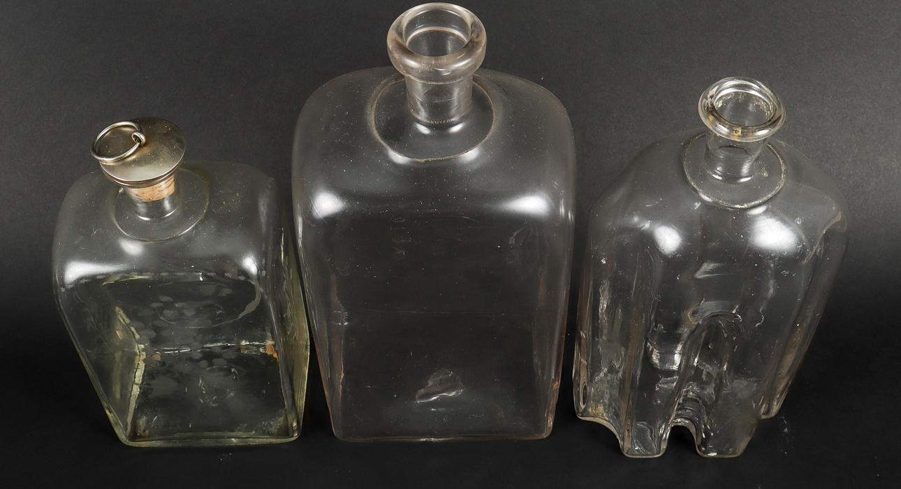 BRÄNNVINSFLASKOR 3 stycken, 1800-tal, blåsta.