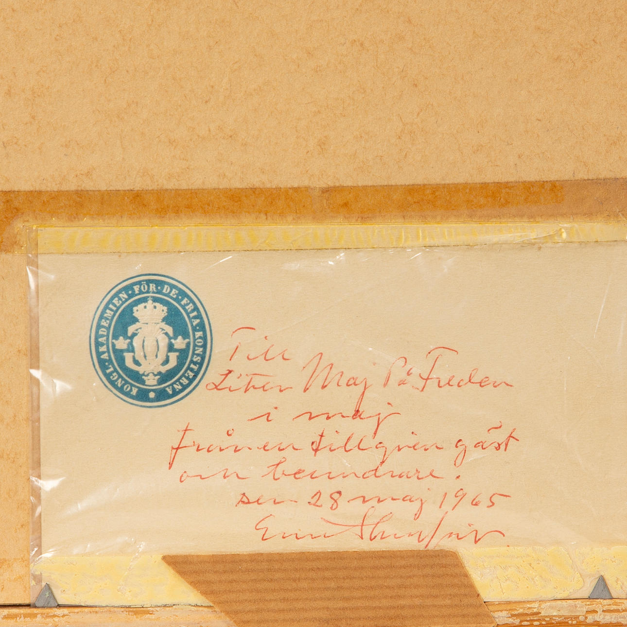 Olja på duk, signerad. Med personlig hälsning a tergo. Bildmått ca 21,5 x 24,5 cm, mått inklusive ram ca 40,5 x 37 cm.