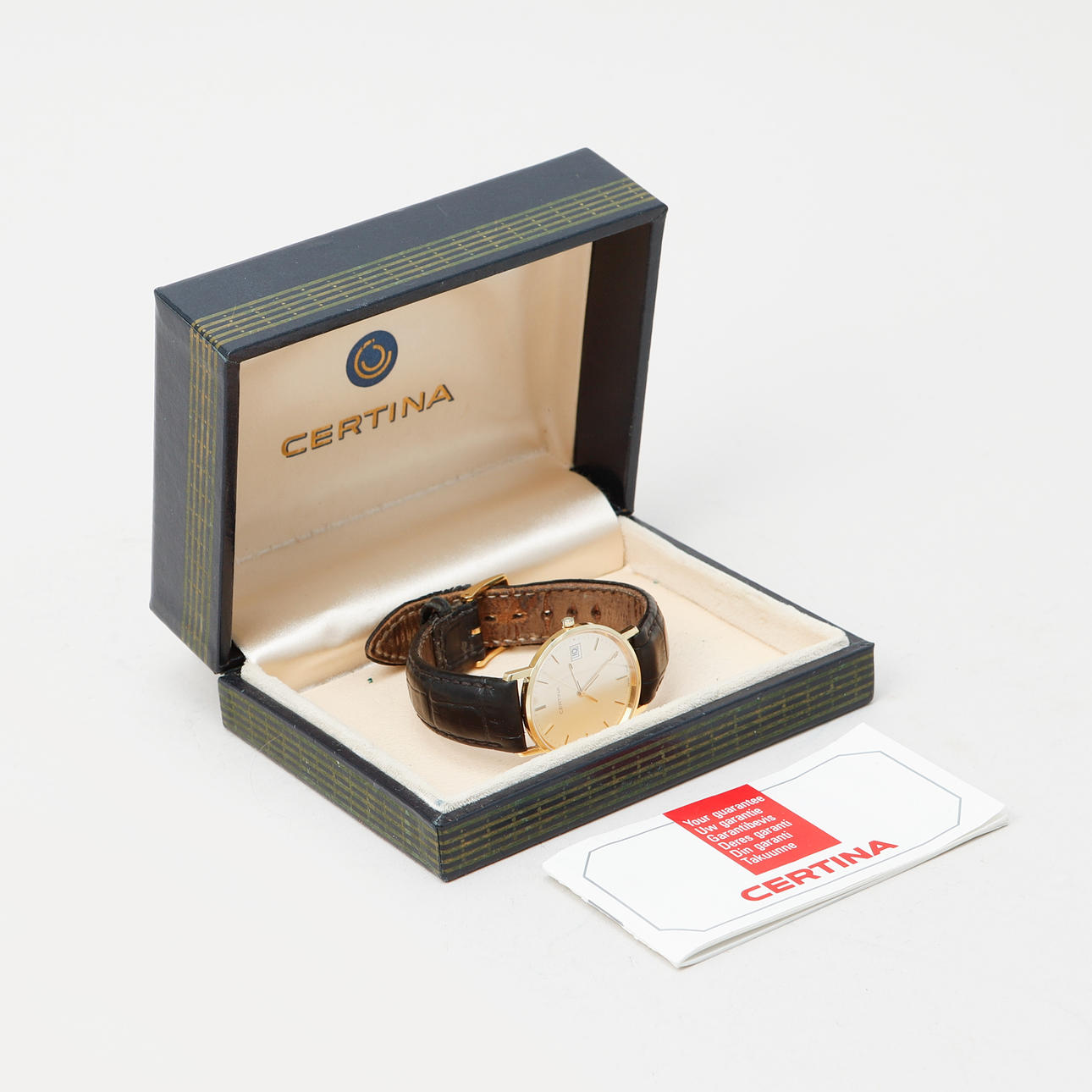 Herrur 33,5 mm Boett nr 158.9289.65 Datum Läderband, lås i doublé Cert dec 1992 Box.