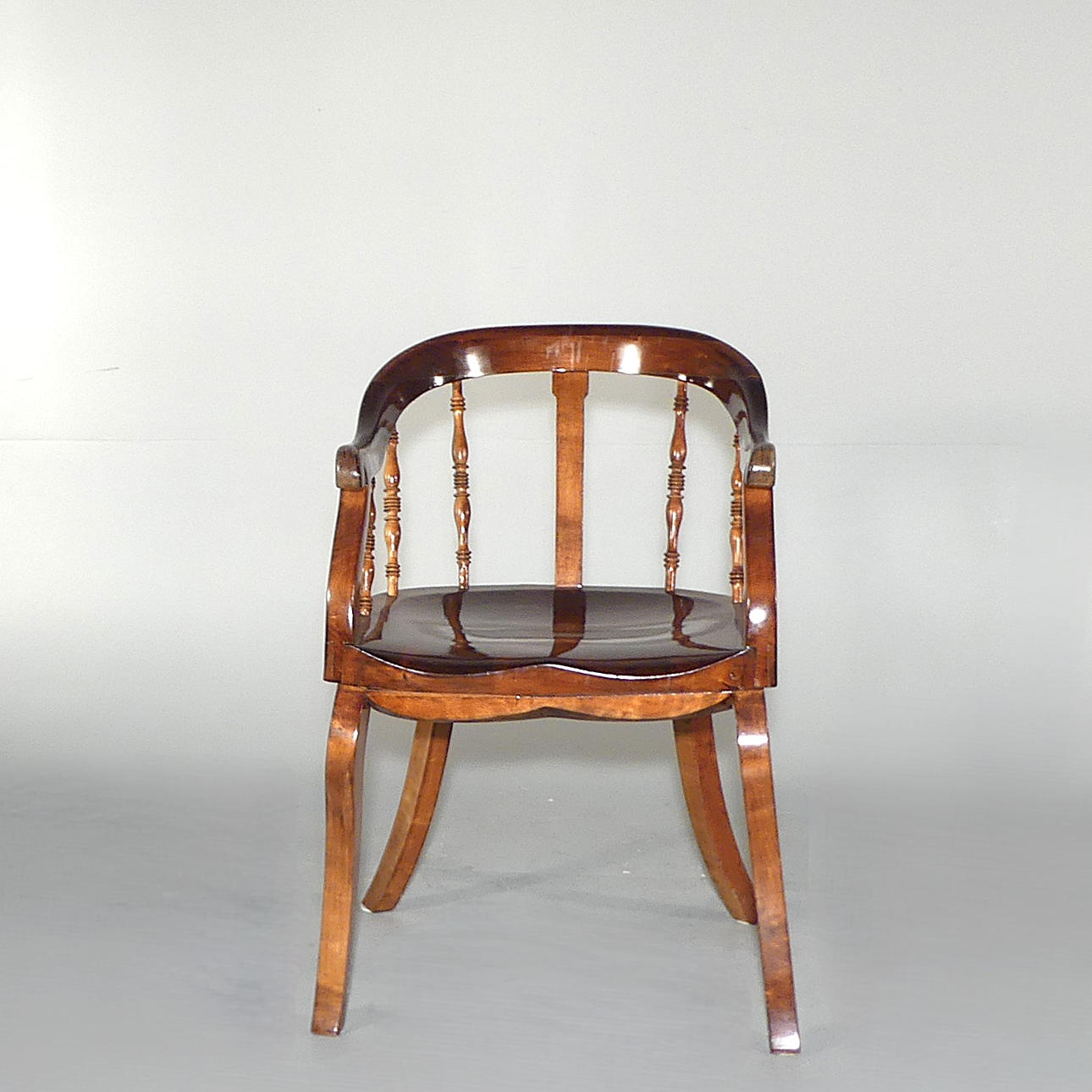 Krackelyr i lack på ryggstöd fram och bak, framförallt på armstöd, i övrigt gott skick.