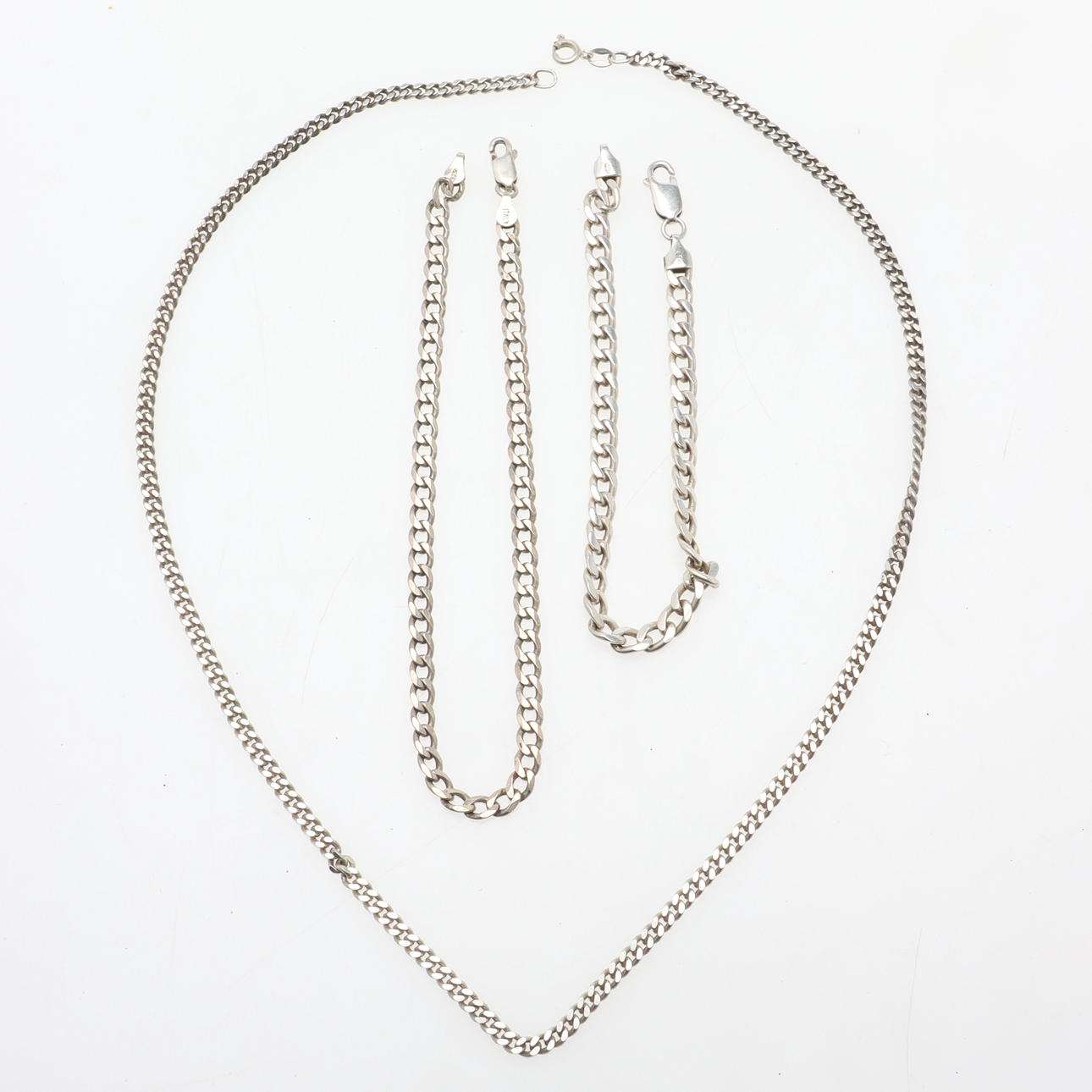SMYCKESSET, 3 st, sterlingsilver, pansarlänkar.