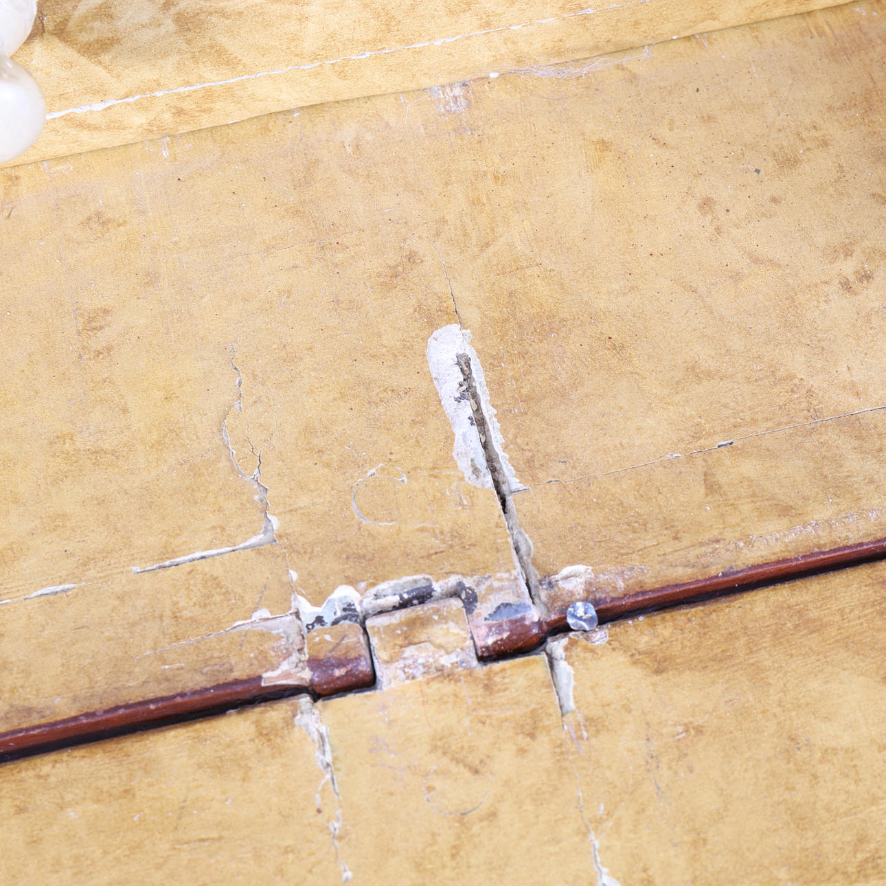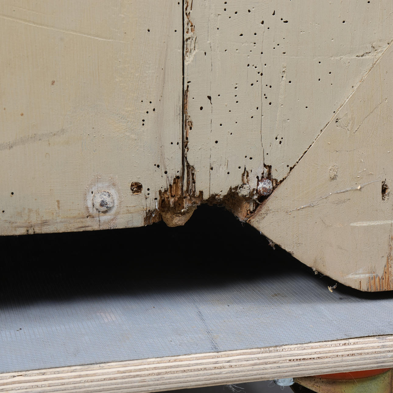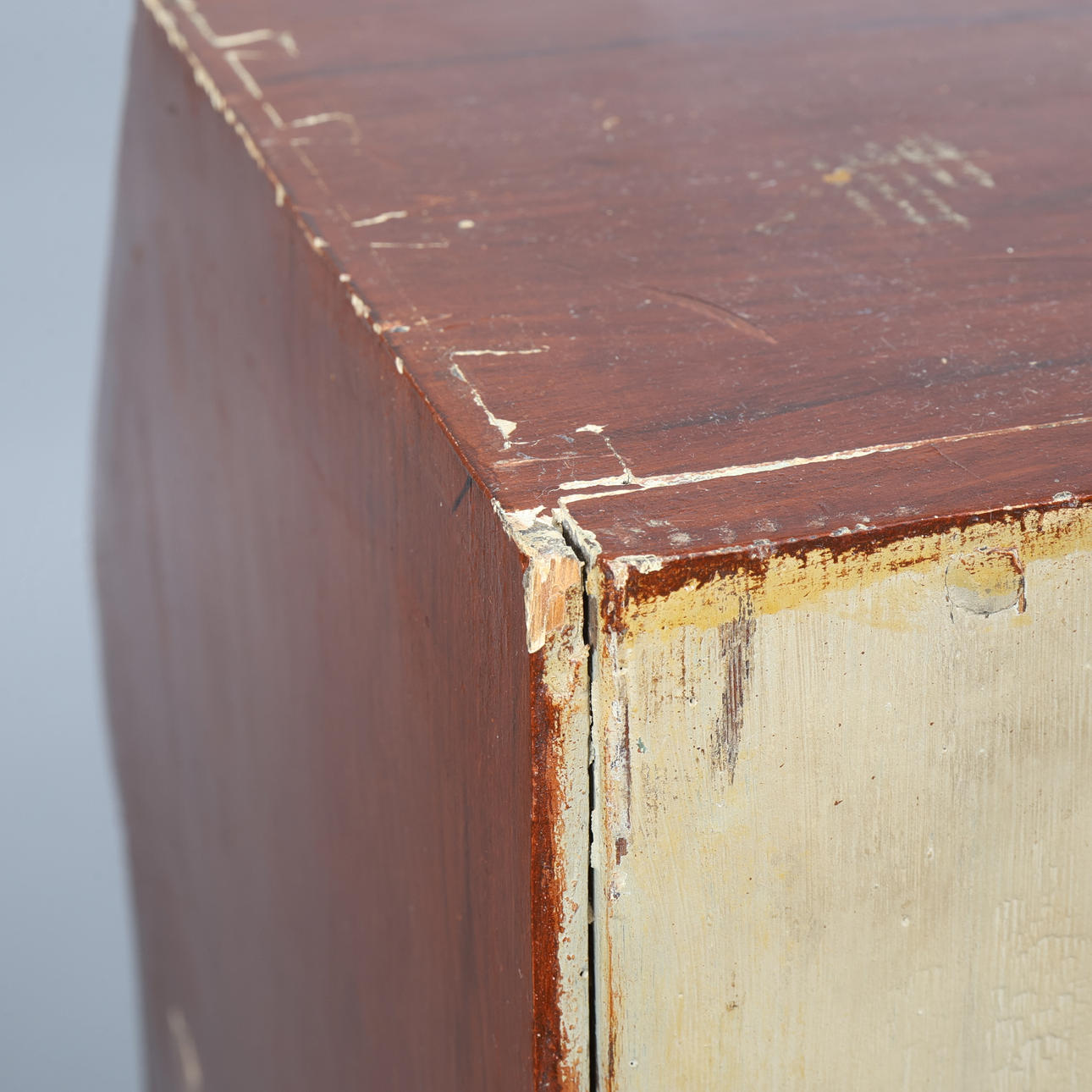 Åldersslitage, färgortfall, skador. Saknas lås samt nyckel.