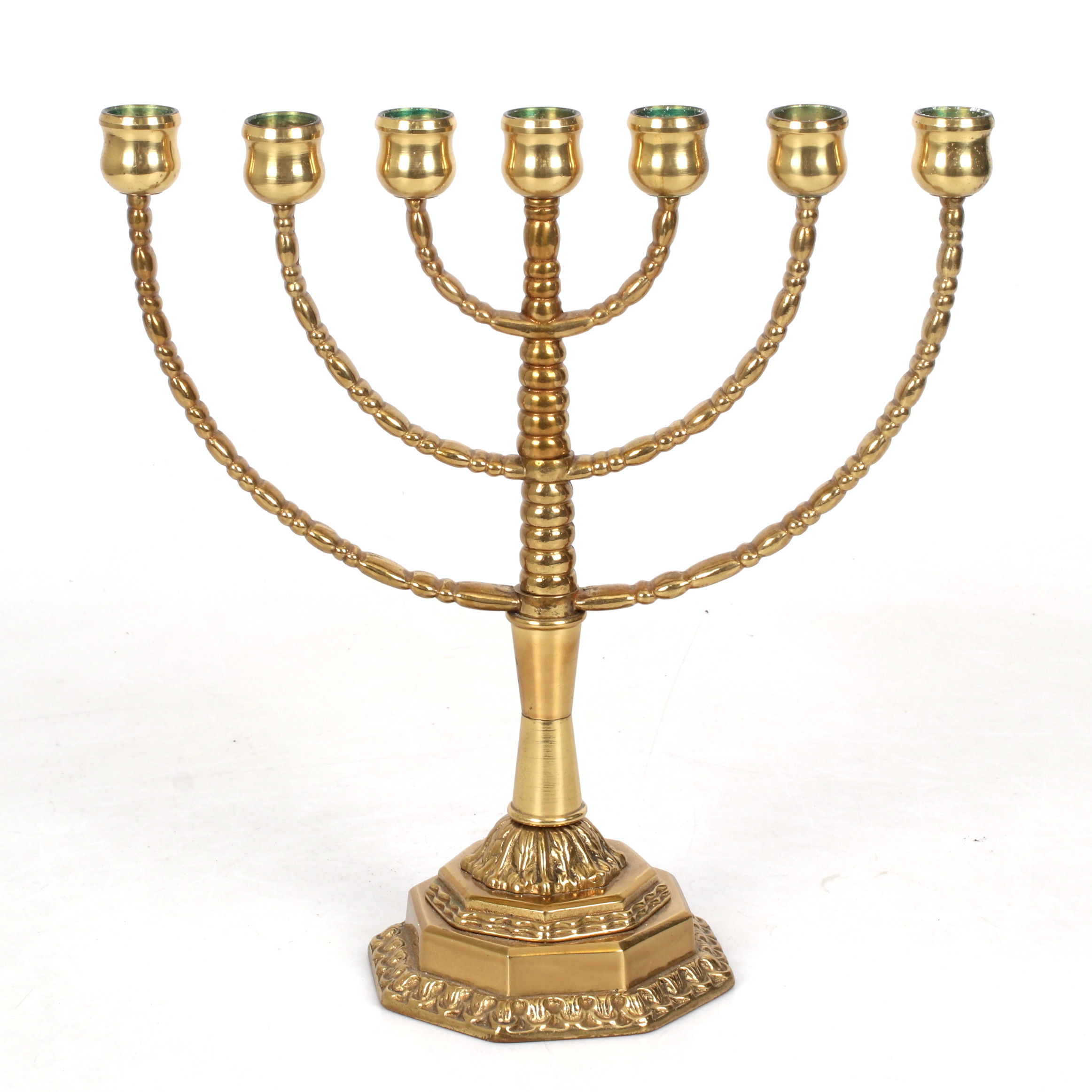 4318127. KANDELABER/MENORA, mässing, 1900-tal.