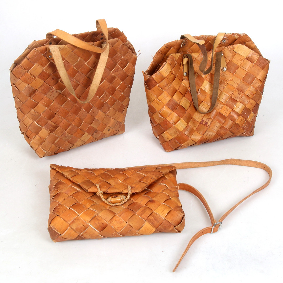4318170. VÄSKOR, 3 st, näver, 1900-talets andra hälft.