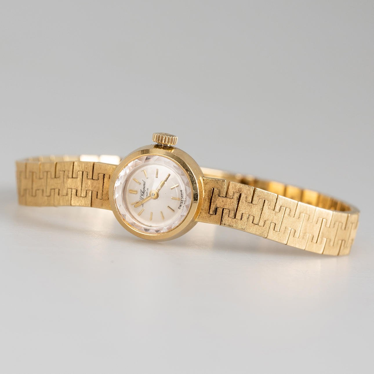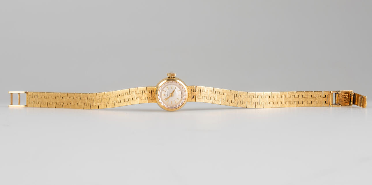 Chopard armbandsur, handlindad, tillverkad av 750 guld, urtavla med minut- och timvisare, mått ca. Fodral Ø15 mm, längd 17,5 cm. Vikt ca. 29,7 gram Klockan tickade vid tidpunkten för recensionen, Stockholms auktionsbutik garanterar inte funktionalitet.