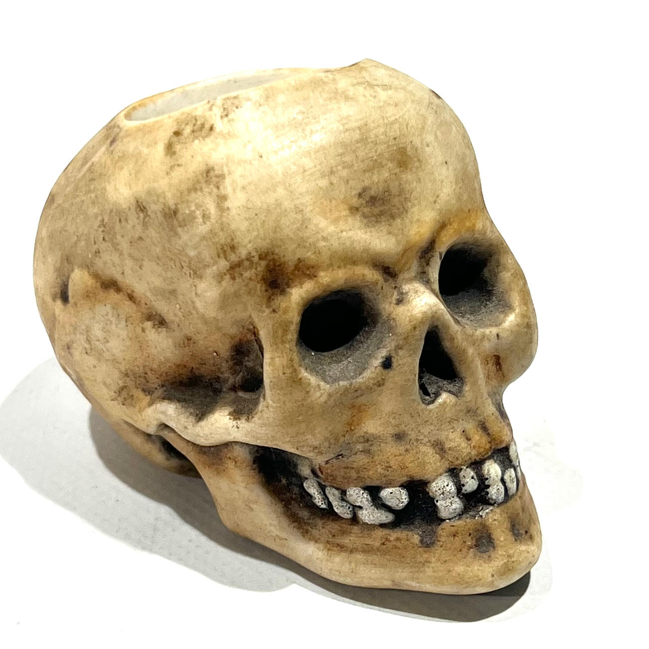4318382. ”Vanitas” dödskallar i porslin ljusstake.