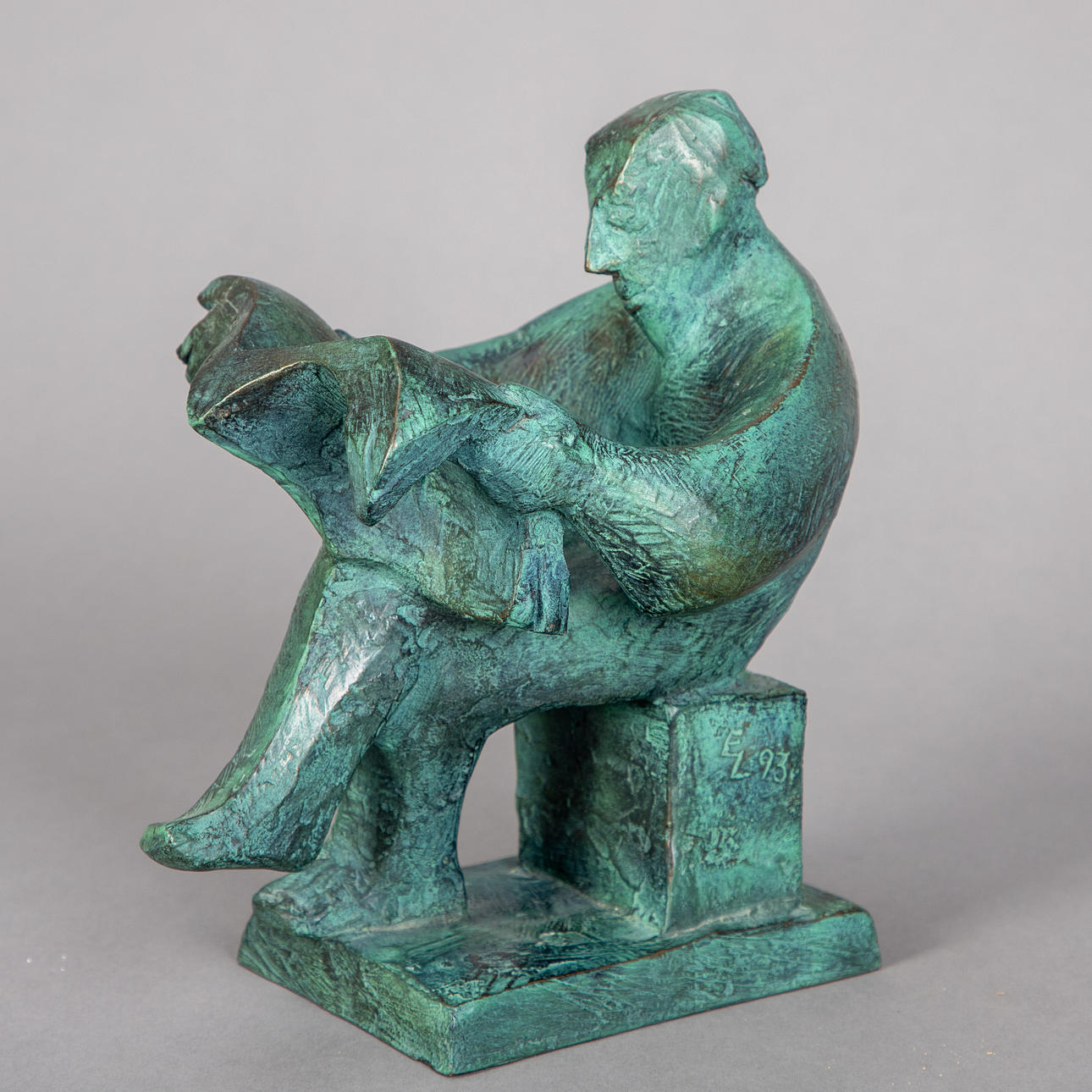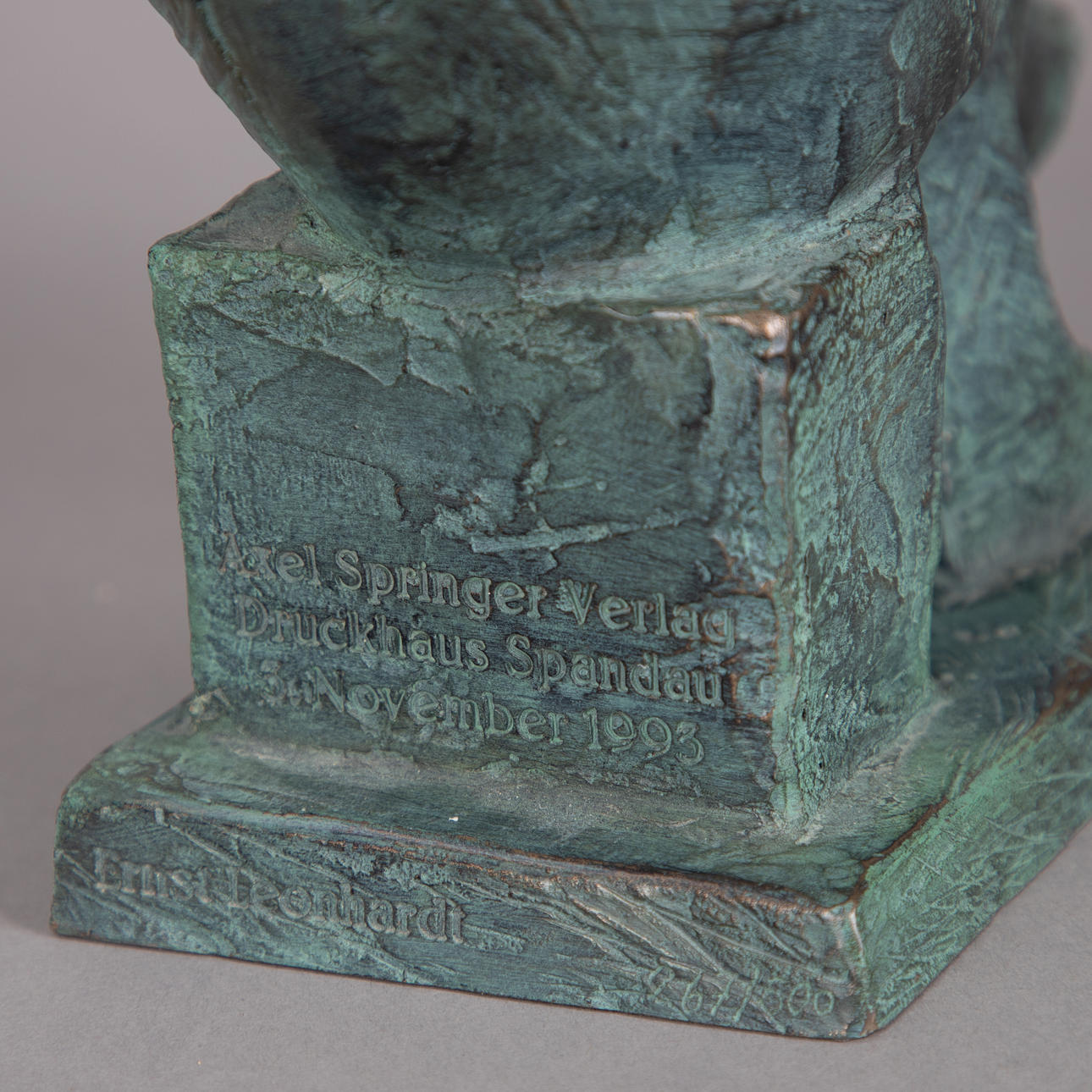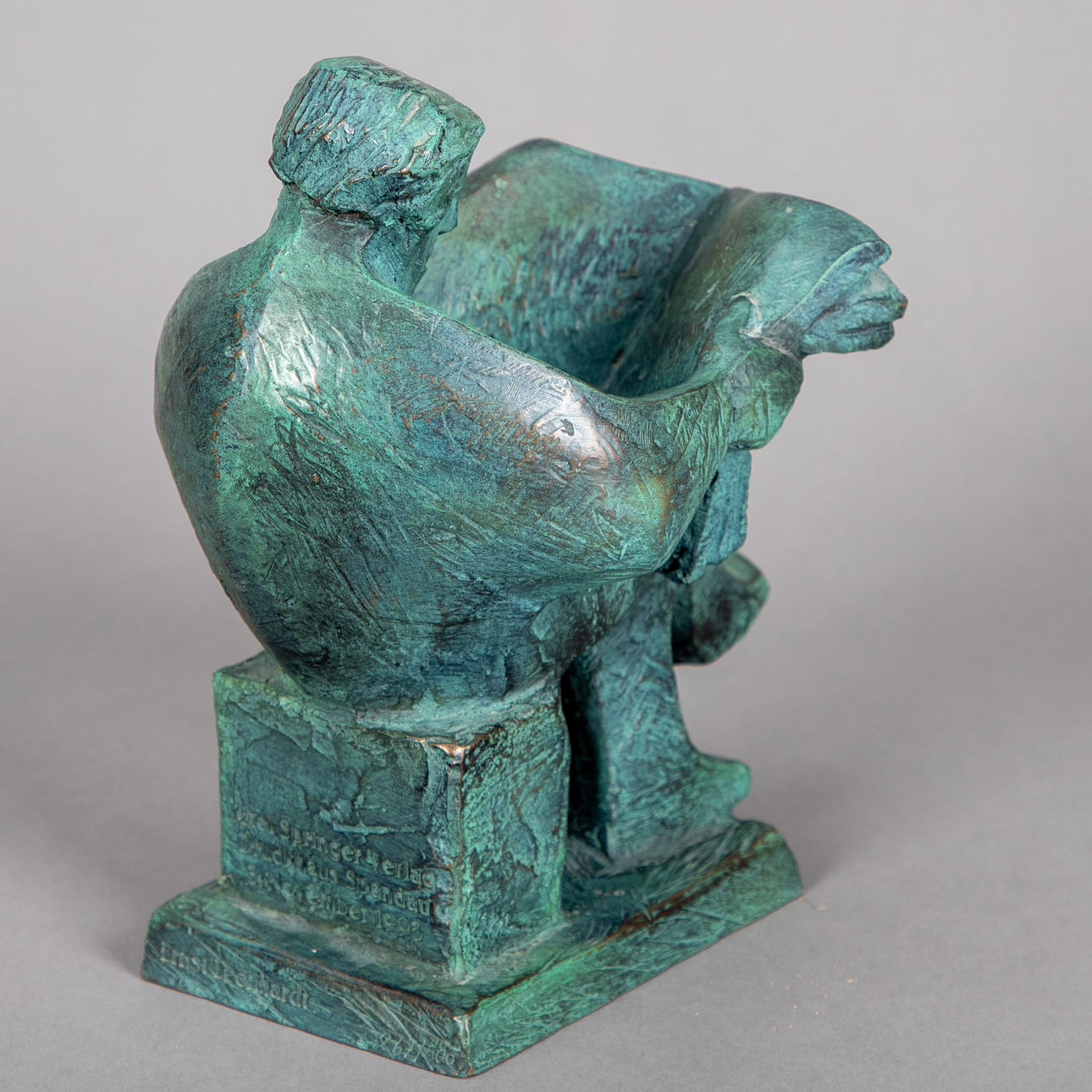 Ernst Leonhardt (1935), Der Zeitungsleser, konstgjutning (harts), sjungad och numrerad på baksidan av basen, med inskription 'Axel Springer Verlag Druckhaus Spandau November 1993', höjd ca. 22 x B 12 x D. 19 cm.
