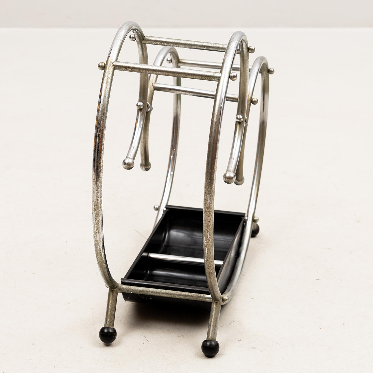 Ställning i metall med avrinningsdel i svart plast. Höjd 48 cm, bredd 18 cm, längd 54 cm.
