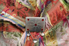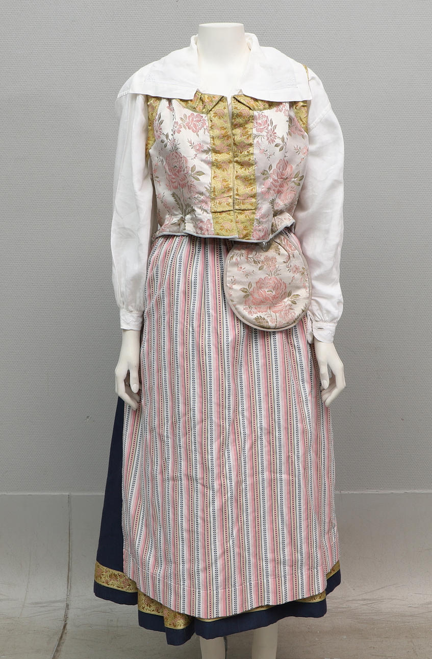 Väst, siden; längd ca 43 cm, midjemått ca 90 cm