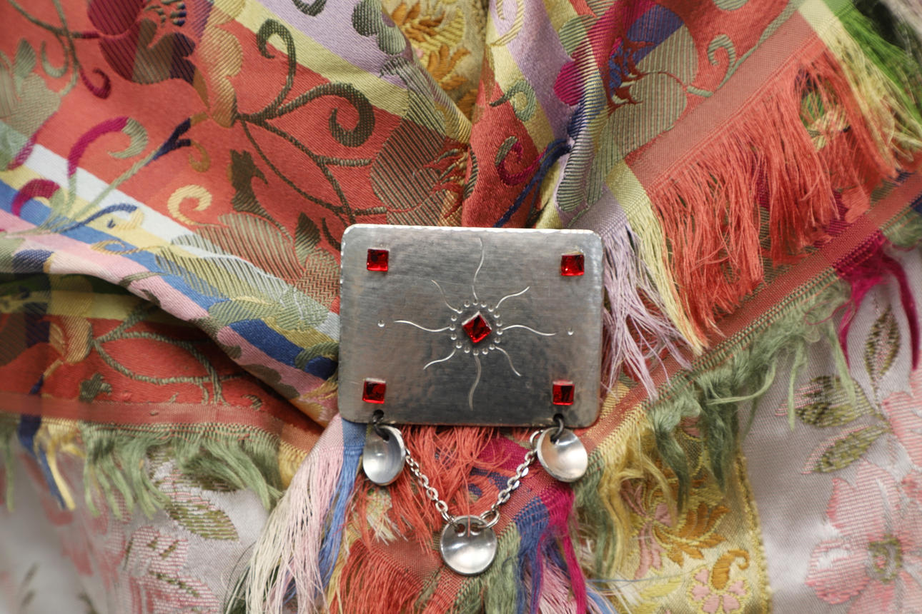 Manschettknappar, örhängen med matchande brosch, vitmetall