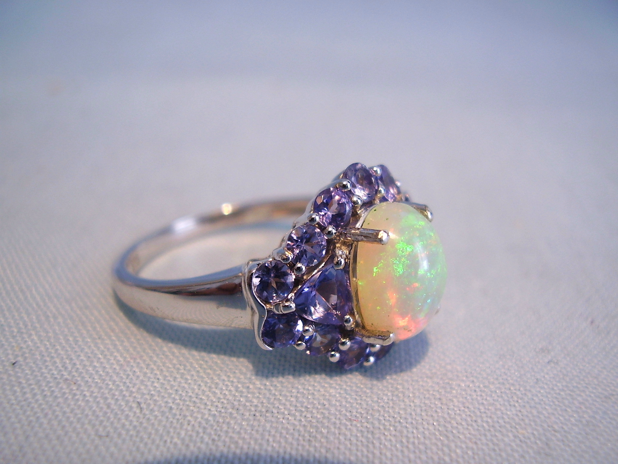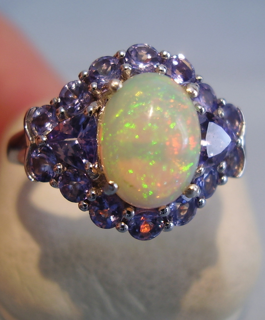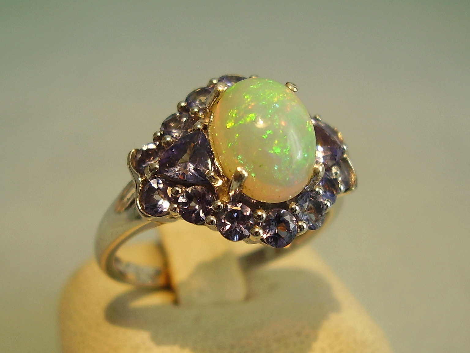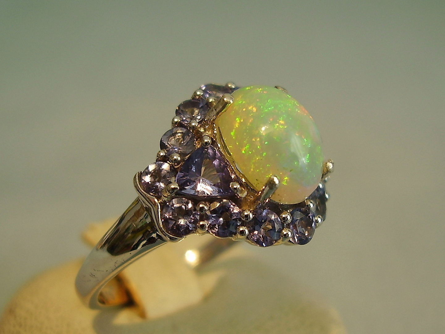 432098. TANZANIT RING MED OPAL, CA.1,90 CT.