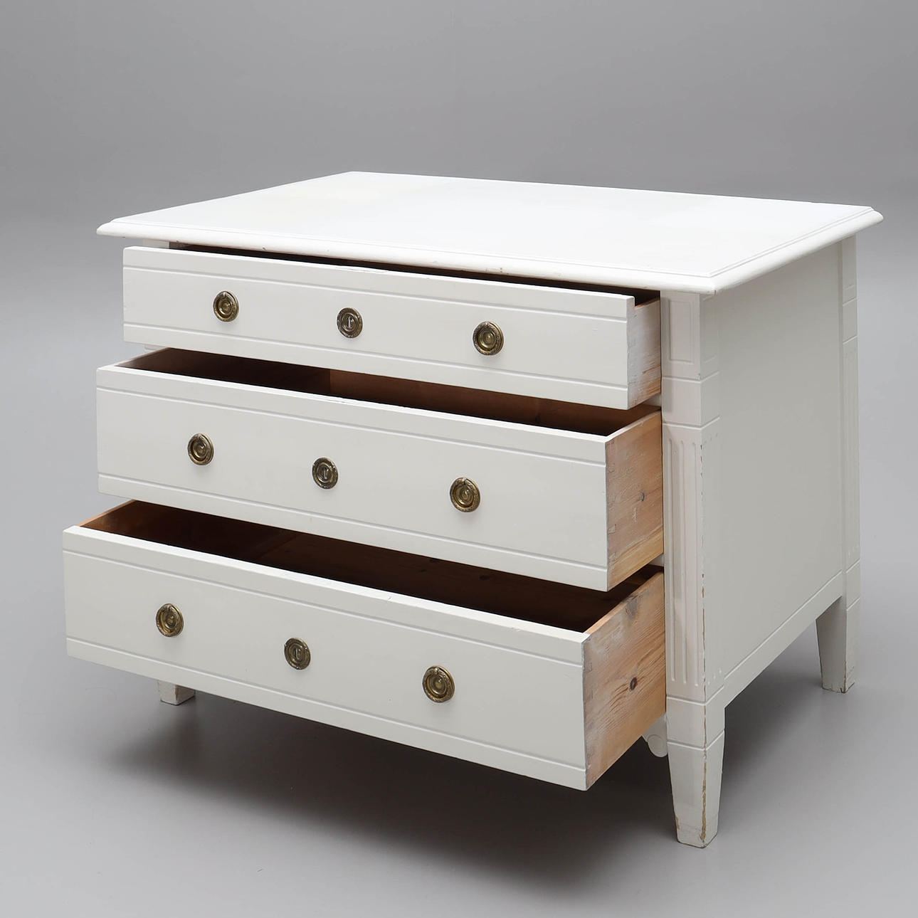 Byrå i sengustaviansk stil, senare bemålat. Tre draglådor.