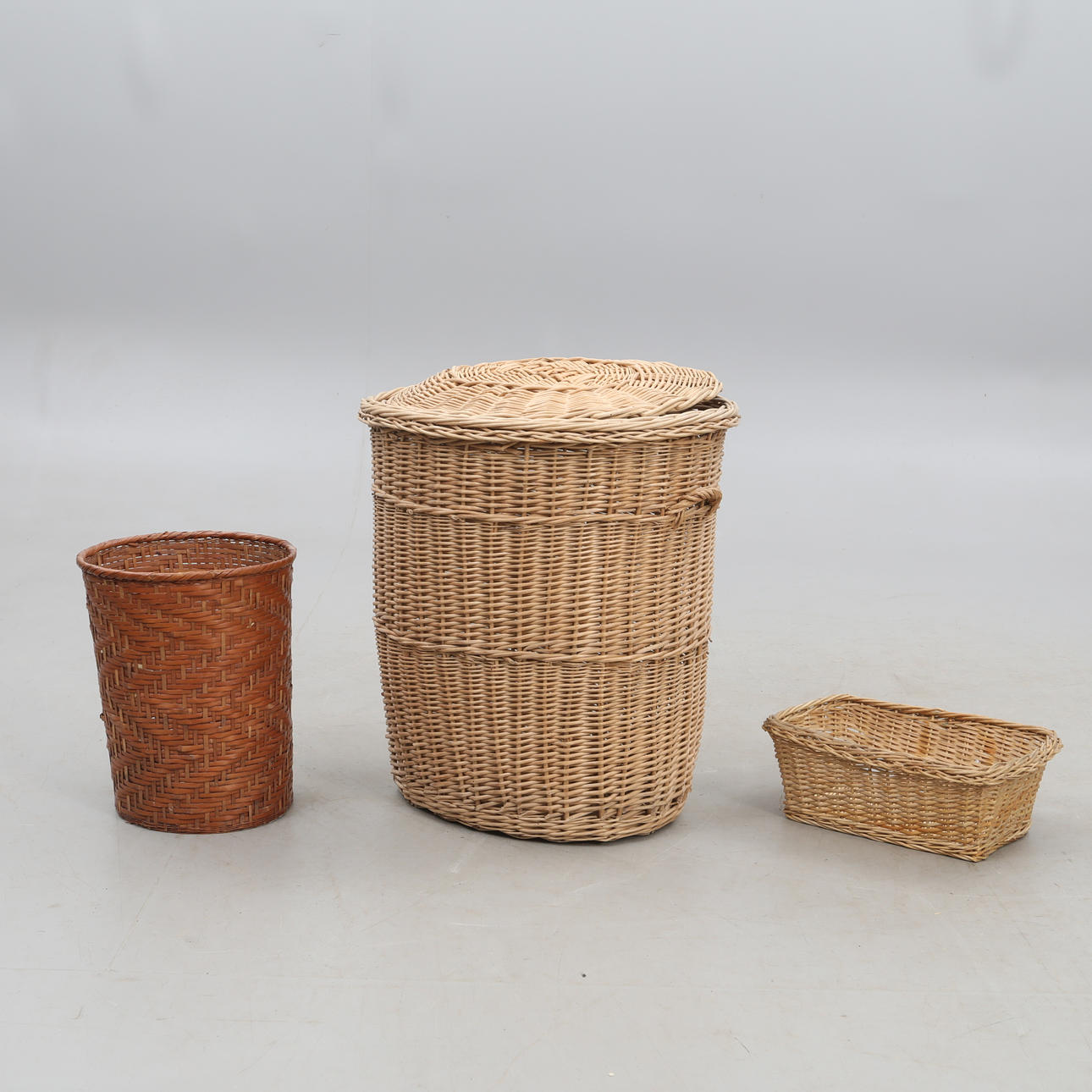 4324503. FLÄTADE KORGAR, tre stycken.