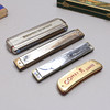 Rheingold, M.Hohner, längd 21,5 cm. Comet, M.Hohner, längd 13 cm. Echo Elite, Hohner, längd 19,5 cm. Hero Octave Harmonica, Shanghai, längd 18 cm.