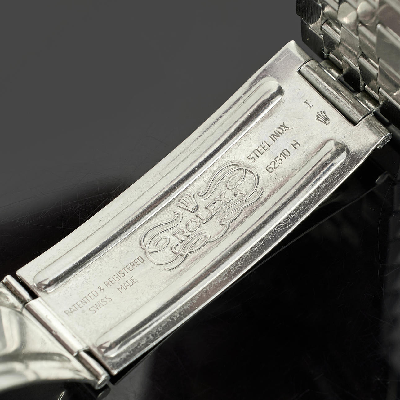 Automatisk, plexiglas, datum, ref. 16030, cal 3035, original jubileelänk, viklås, låsnr. 62510H, diameter 36 mm.