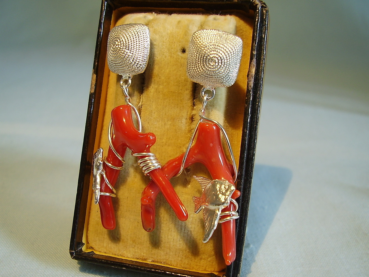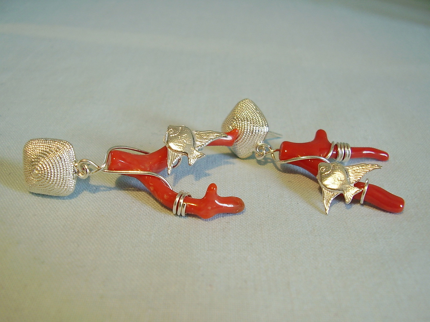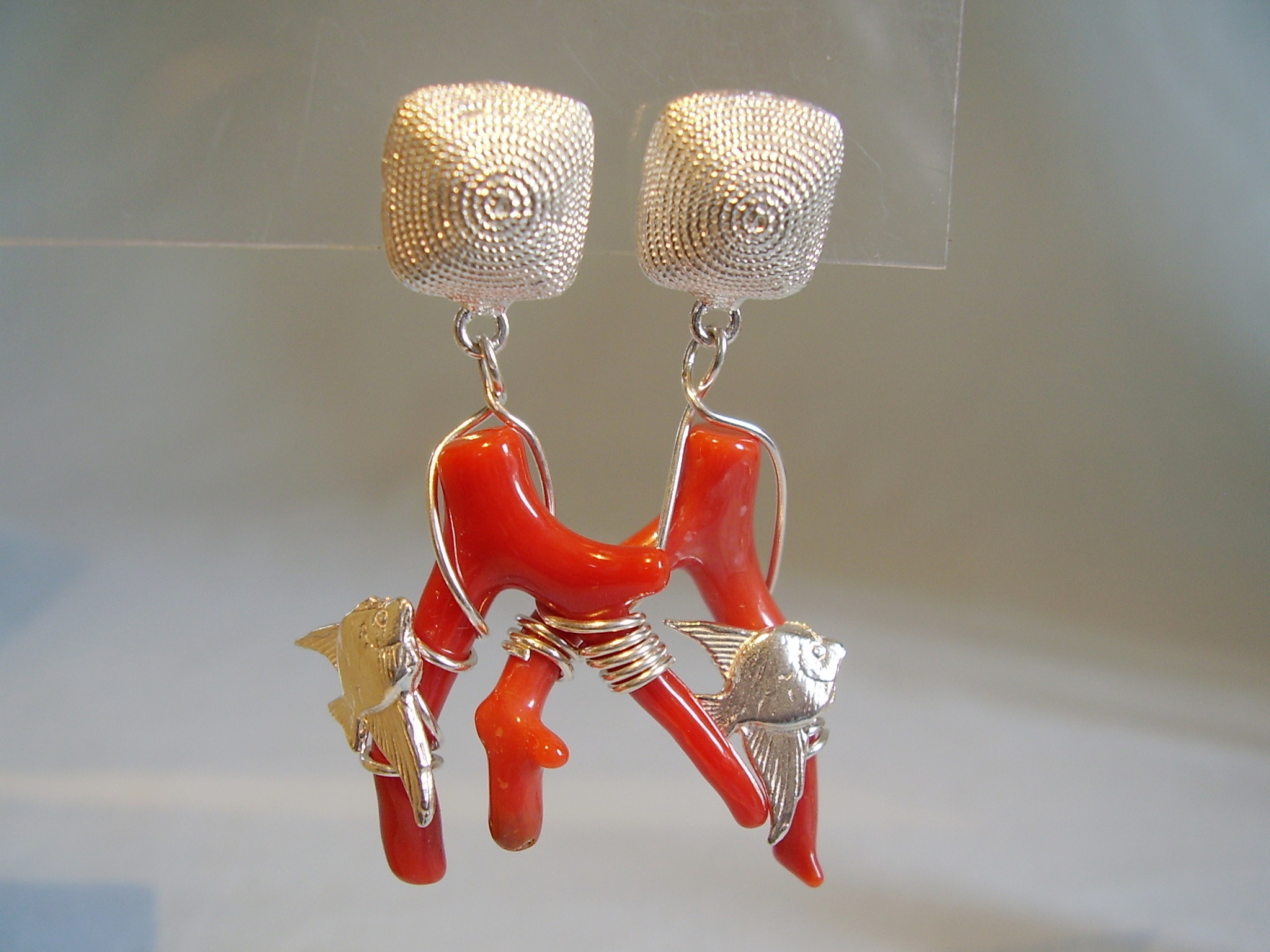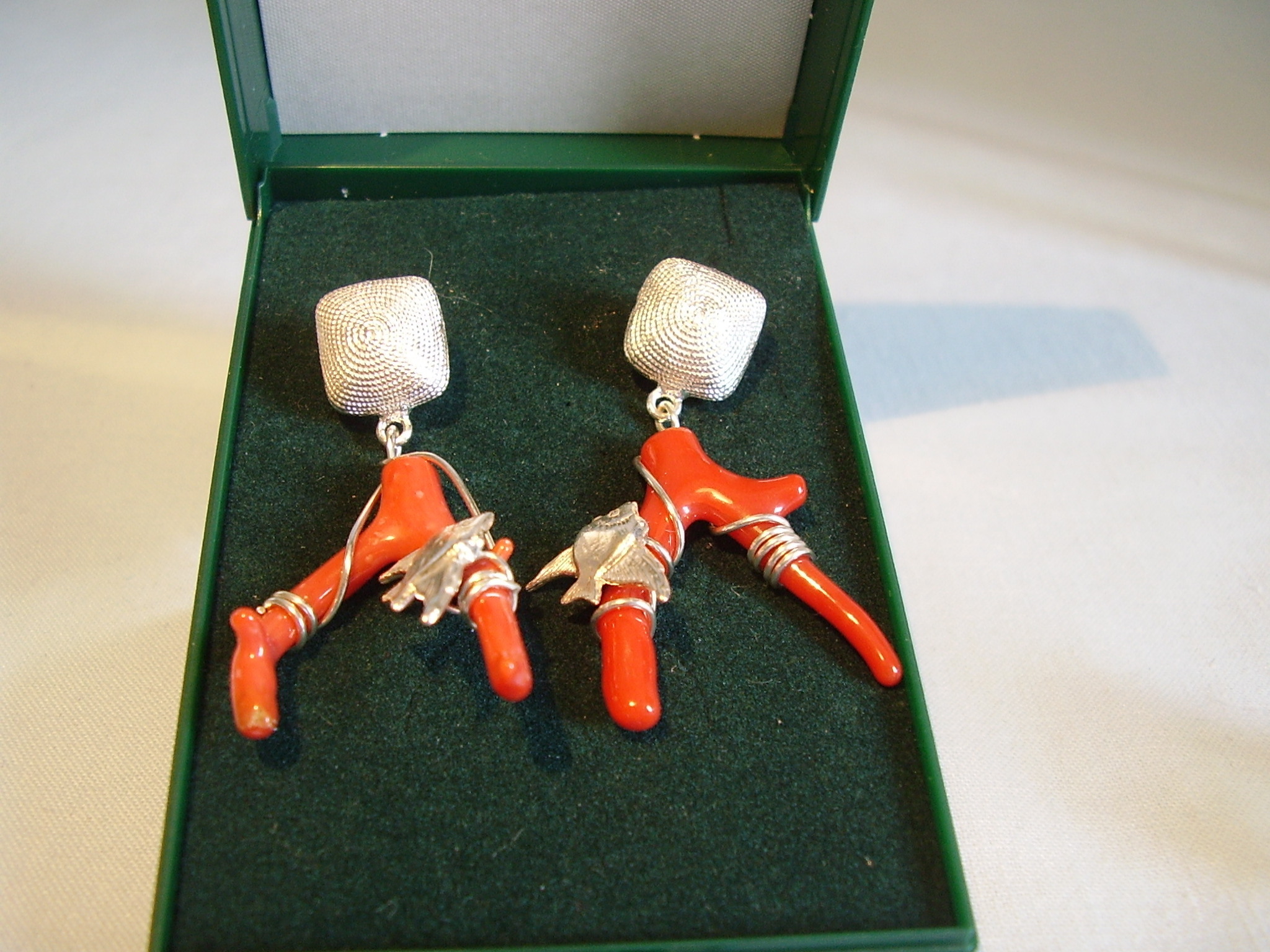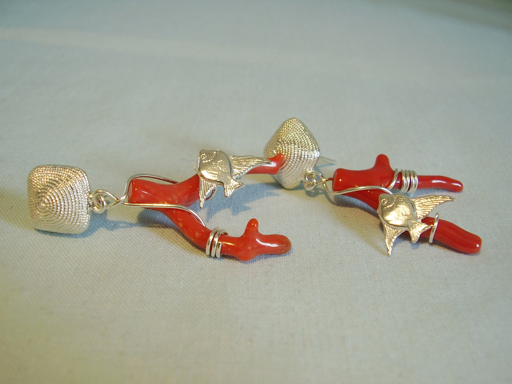 432610. ÖRHÄNGE, korall, silver 925.