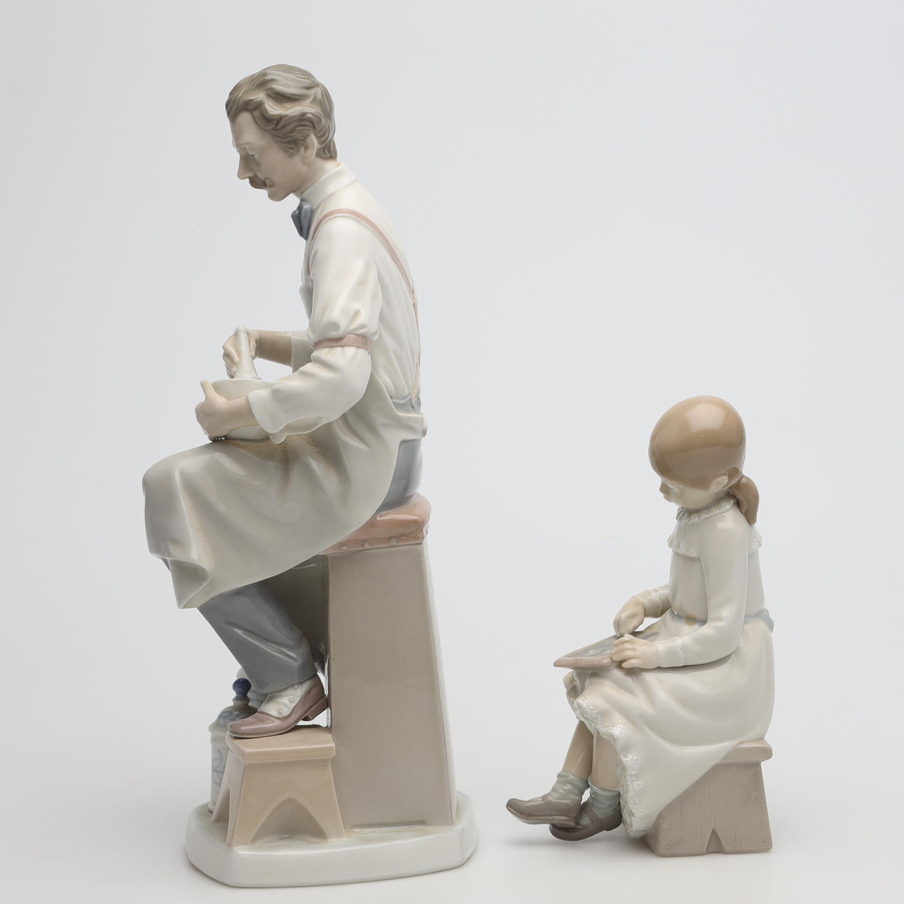 4326171. FIGURINER, 2 stycken, porslin, Lladro samt Nau, Spanien.