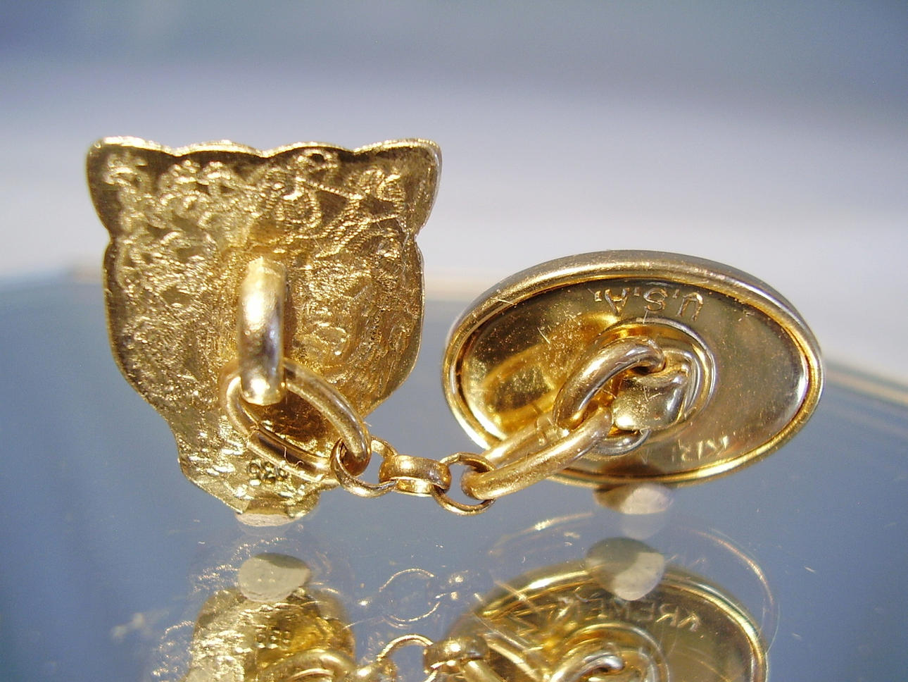 I silver 935 och förgyllda gult guld 585:e, Art Deco, Krementz, USA. Format panter 1,5 x 1,3 cm, hänge (ovalt) 1,6 x 1,1 cm, vikt 13,3 gram.