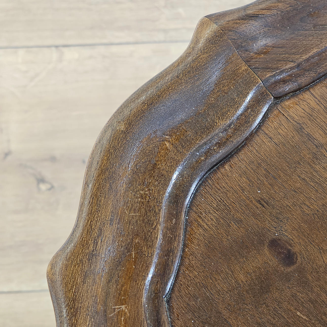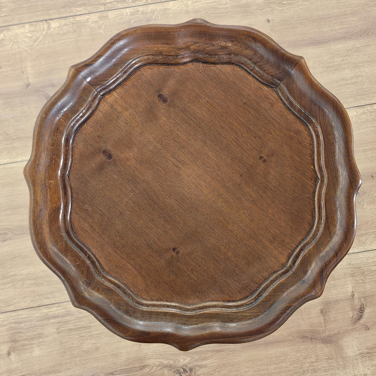 Cirkulärt kuvert med vågig kant.