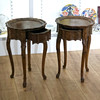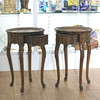 4328743. Par träbord med låda.