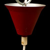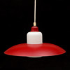Kupa av opalglas. Skärm och takkopp i rödlackerad metall. Diameter ca 38, höjd 122 cm.