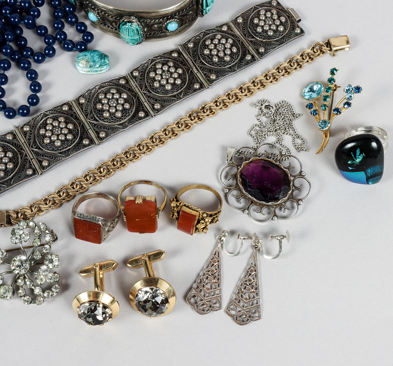 Örhängen paret, halskedja med hänge, armband filigranarbete.