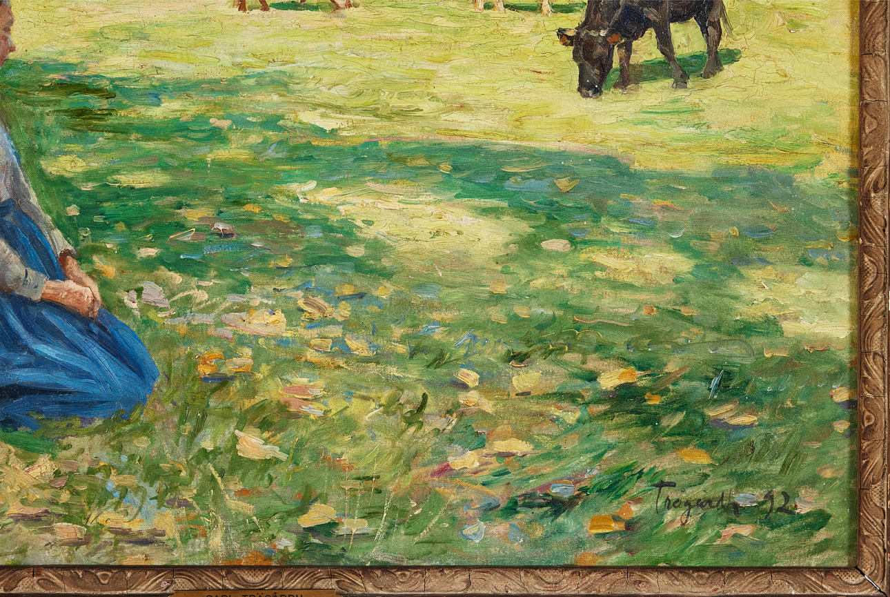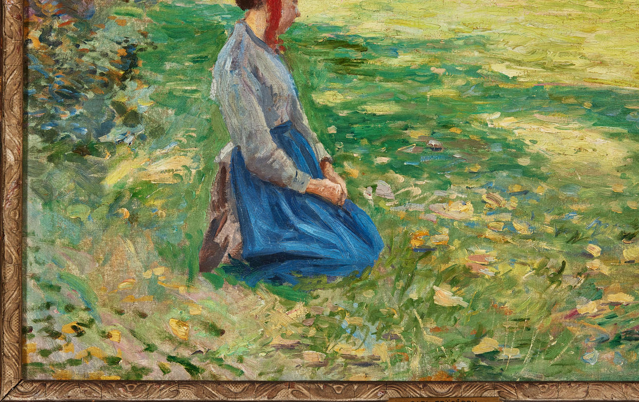 Carl Trägårdhs sena verk utmärks av en större ro och eftertanke. Naturen blev scen för stillsamma figurer i mjuka poser, samtidigt som det impressionistiska ljuset och färgkontrasten levde kvar. Just denna kombination märks tydligt i det aktuella katalognumret från 1892, där de friska färgerna samsas med en nyfunnen harmonisk stämning – ett verk som speglar konstnärens mogna uttryck och unika position i svensk konsthistoria.