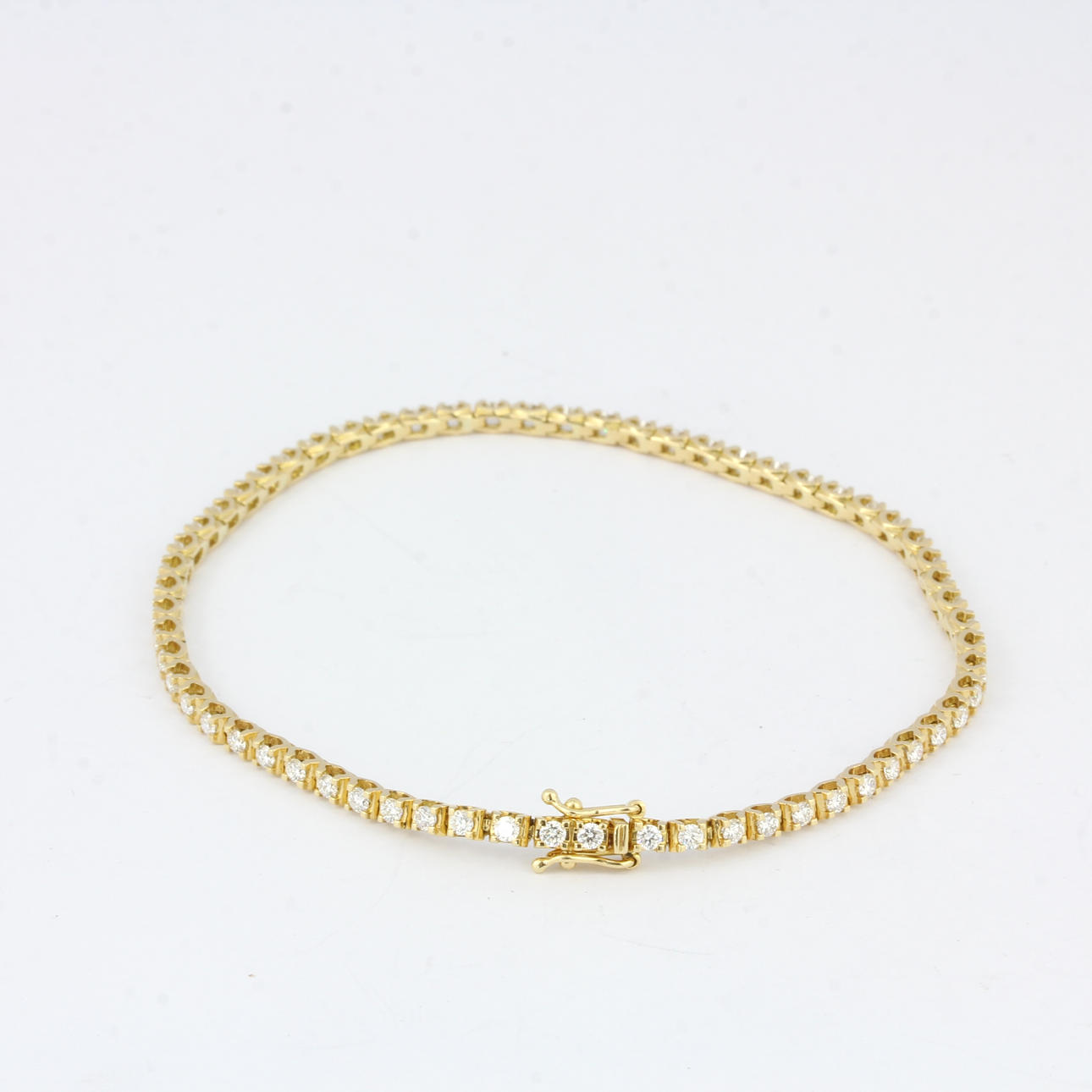 TENNISARMBAND, 18K gult guld diamantinfatterat. Dia. Ungefär. 1,55 ct. Längd: 22cm.
