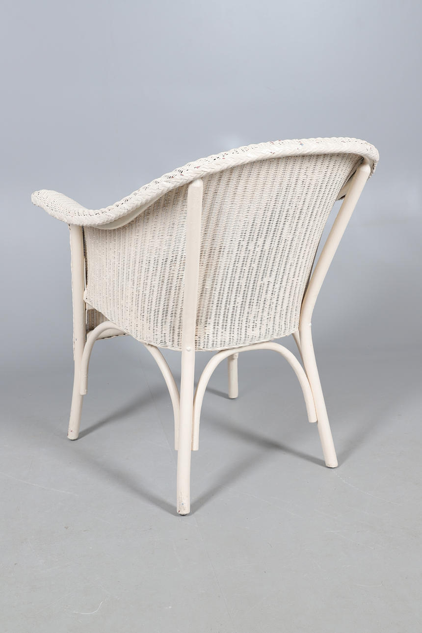 av typisk form, målad med en vit yta, med bladad sittdyna, 68 cm bred x 78 cm hög.