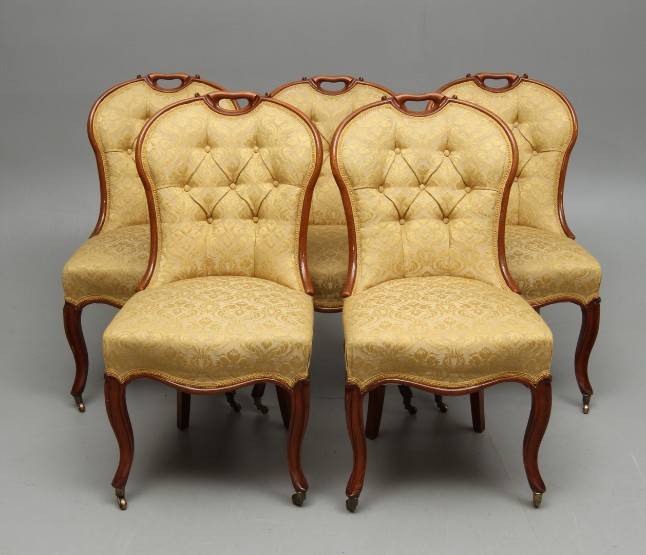 43327. FÅTÖLJER, 5 st, omkring 1900.