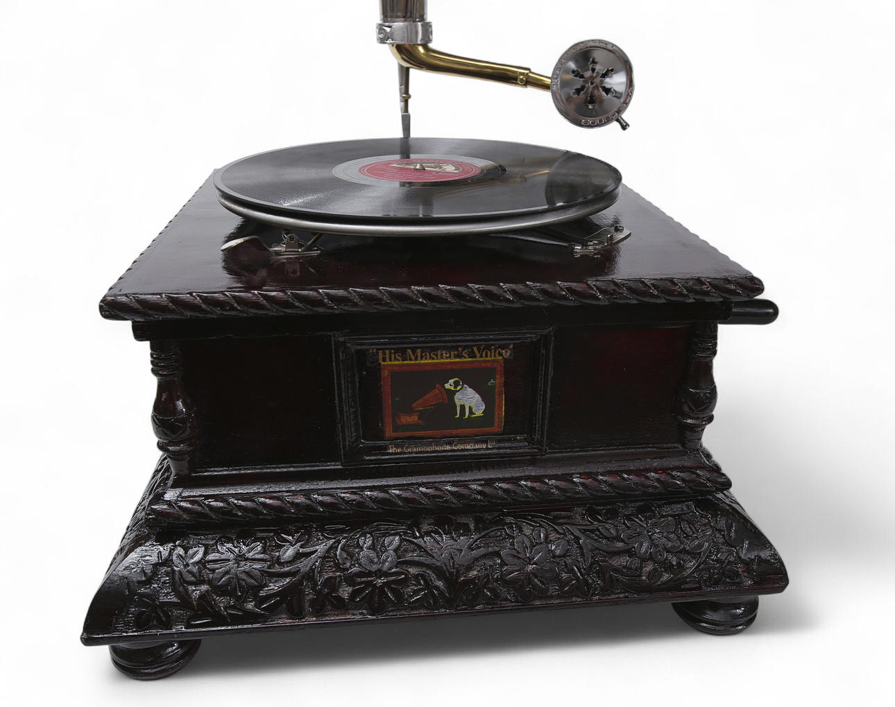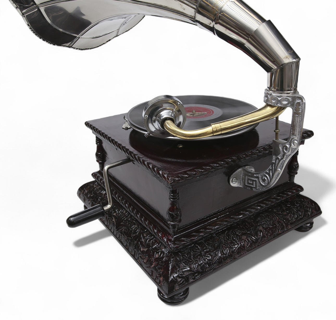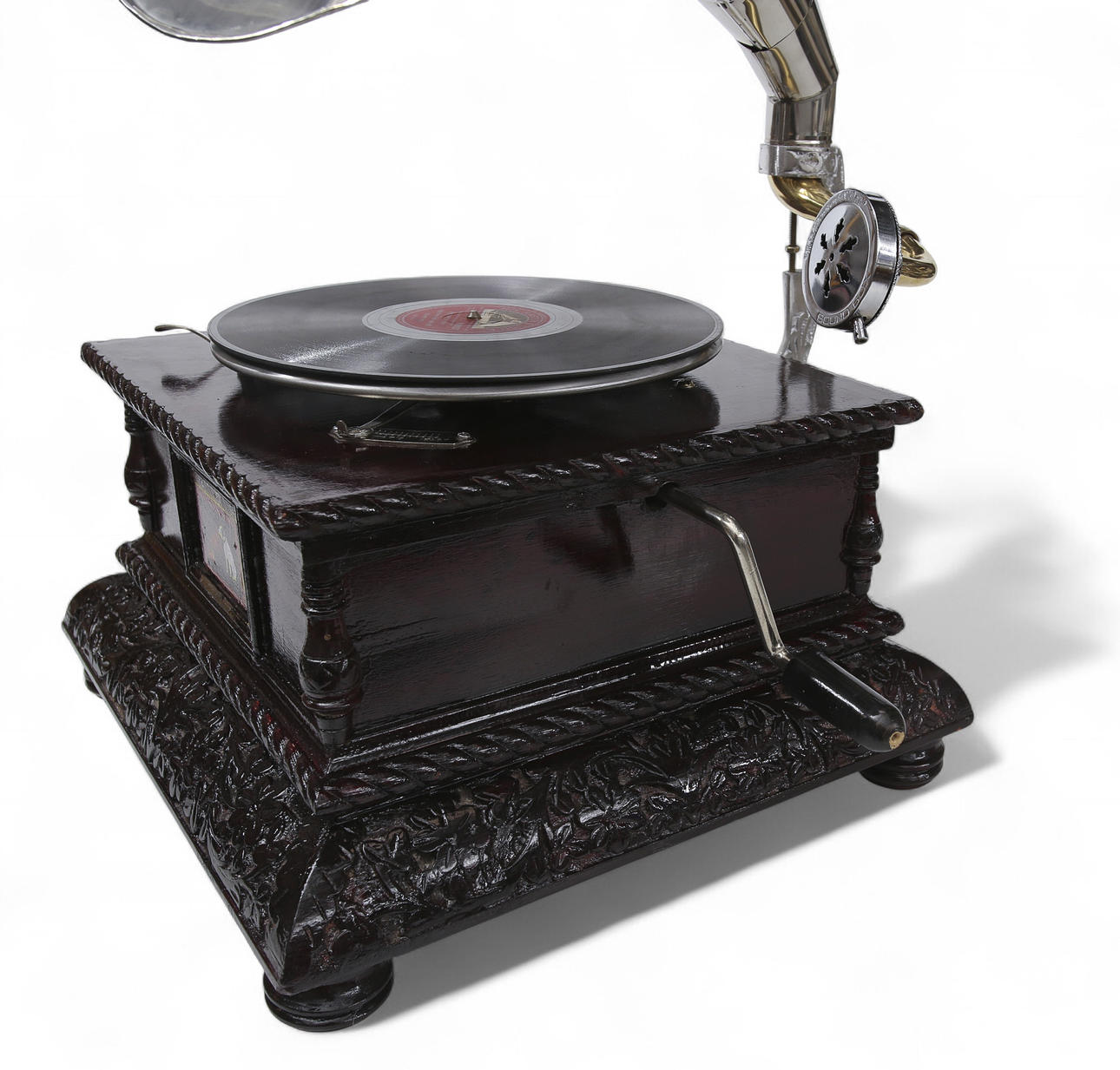 4333620. VEVGRAMMOFON, trä och metall, samtida.