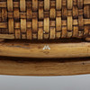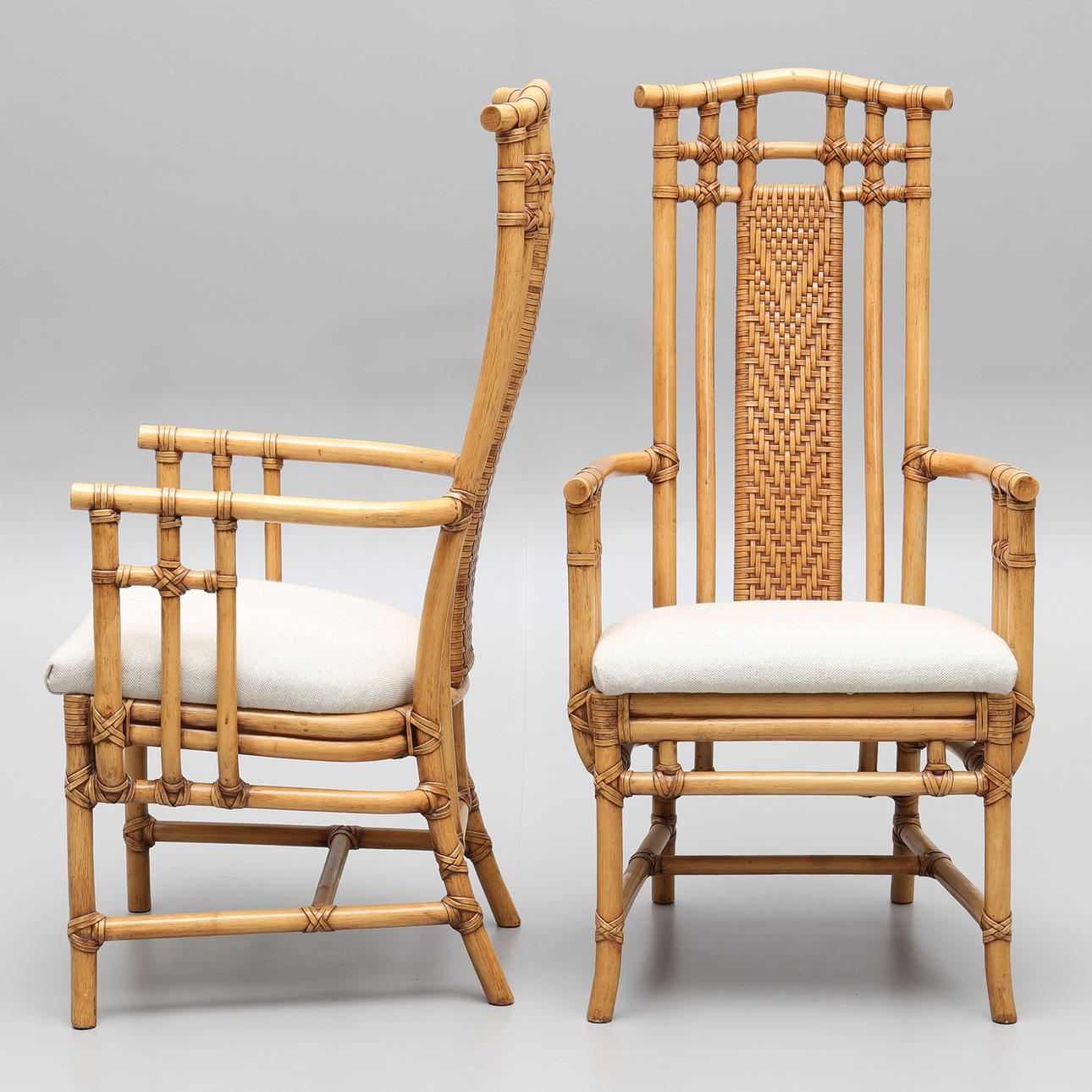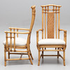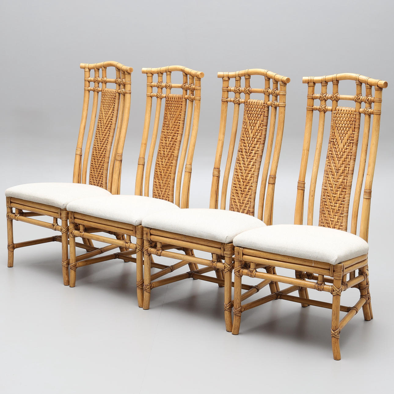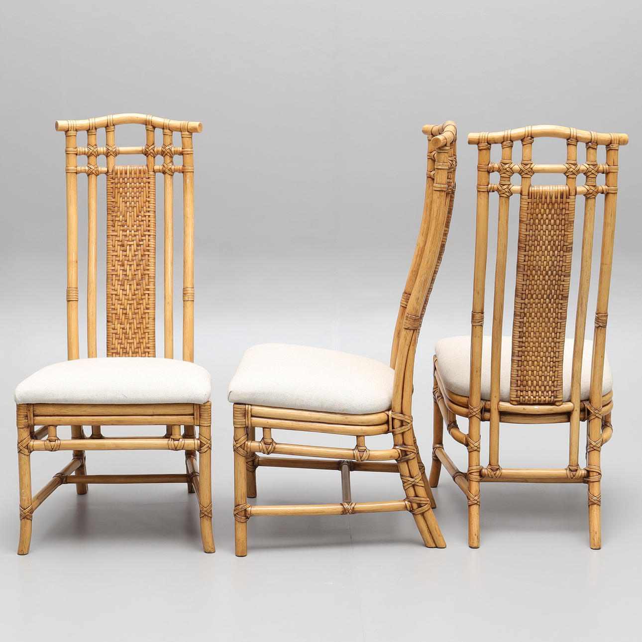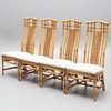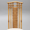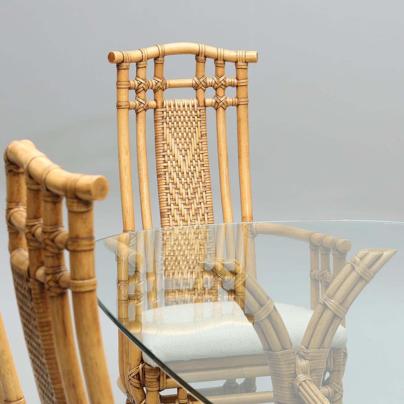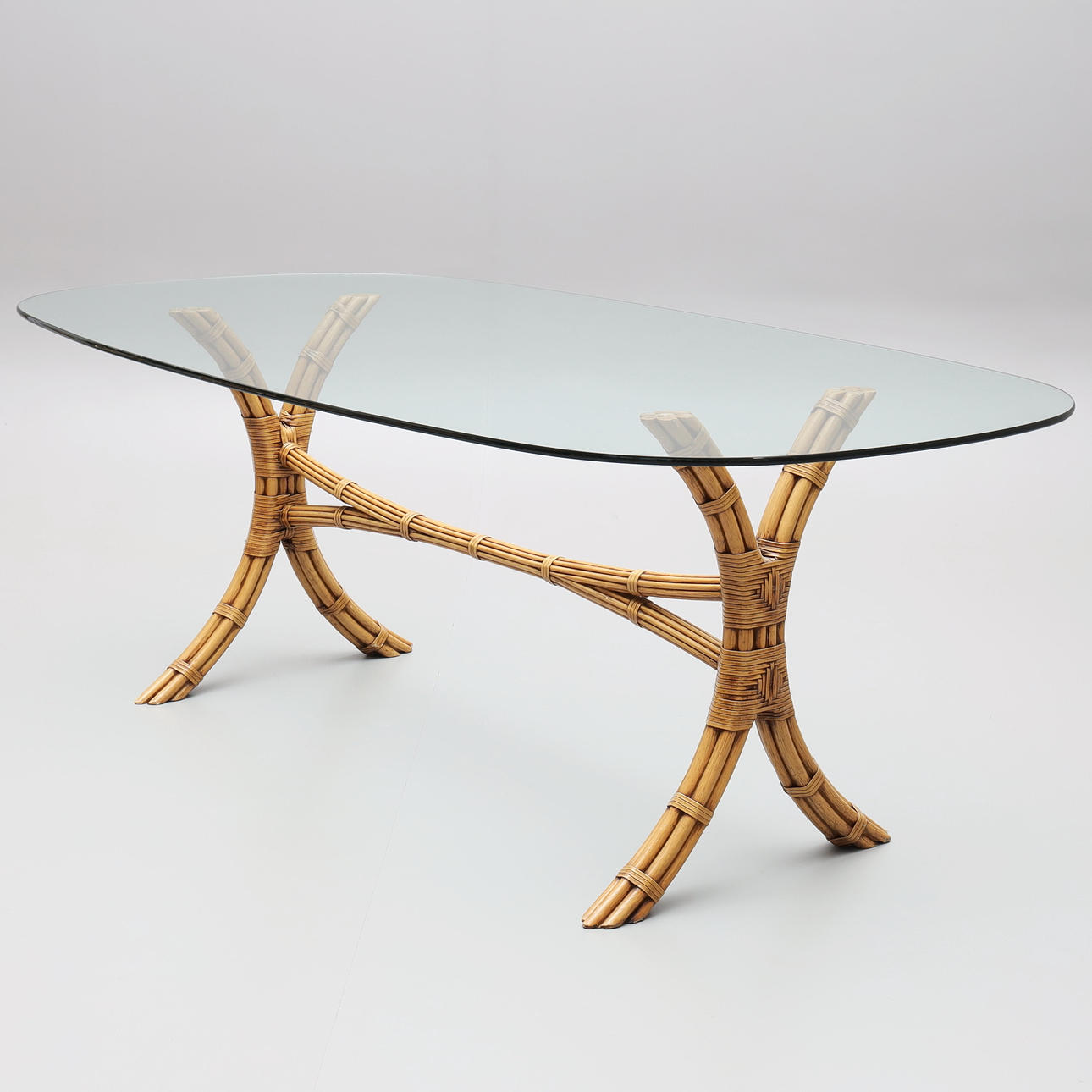 Bord med löst liggande bordsskiva i glas, underrede i rotting och bambu.