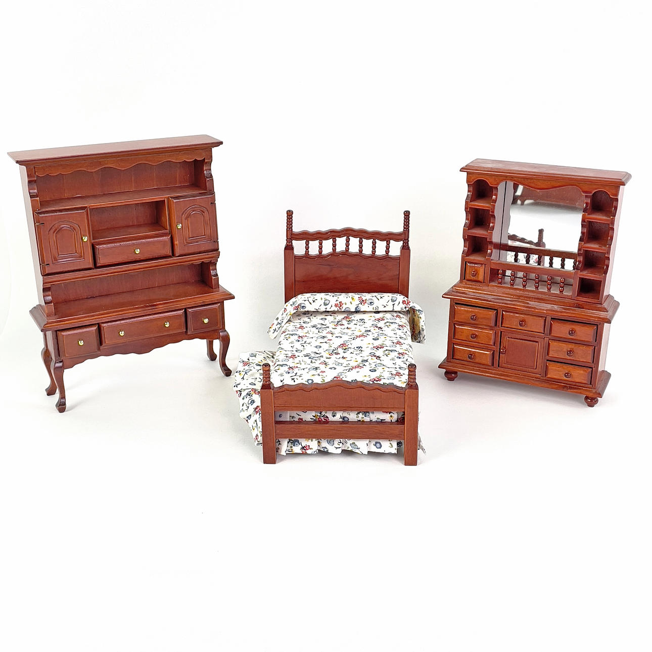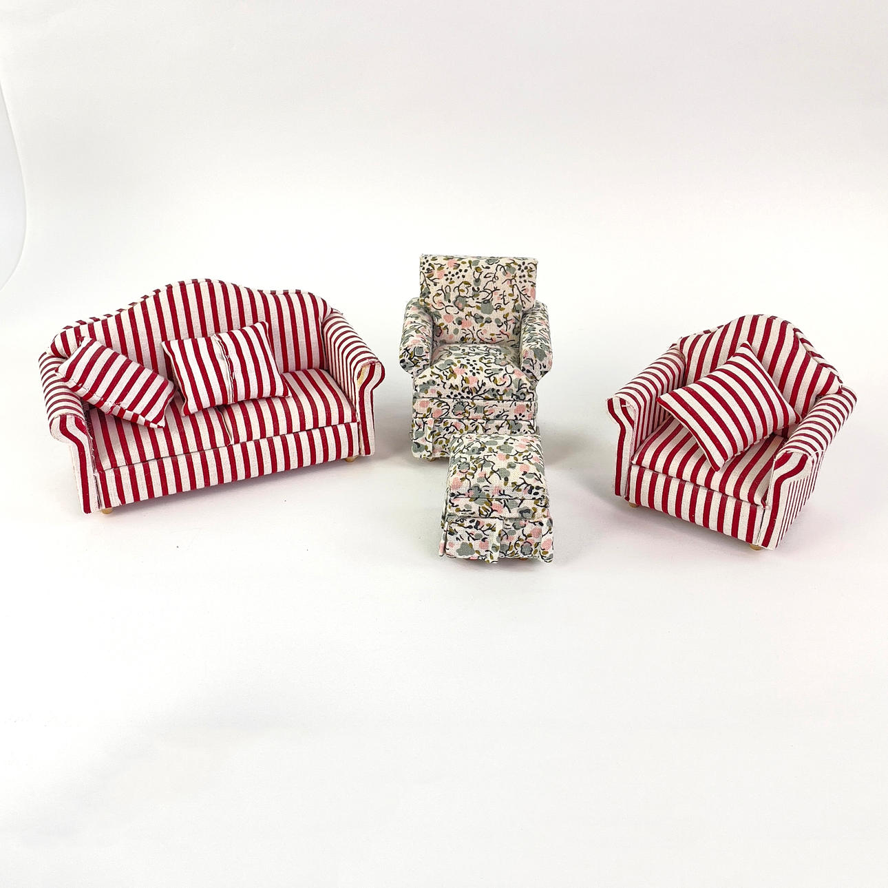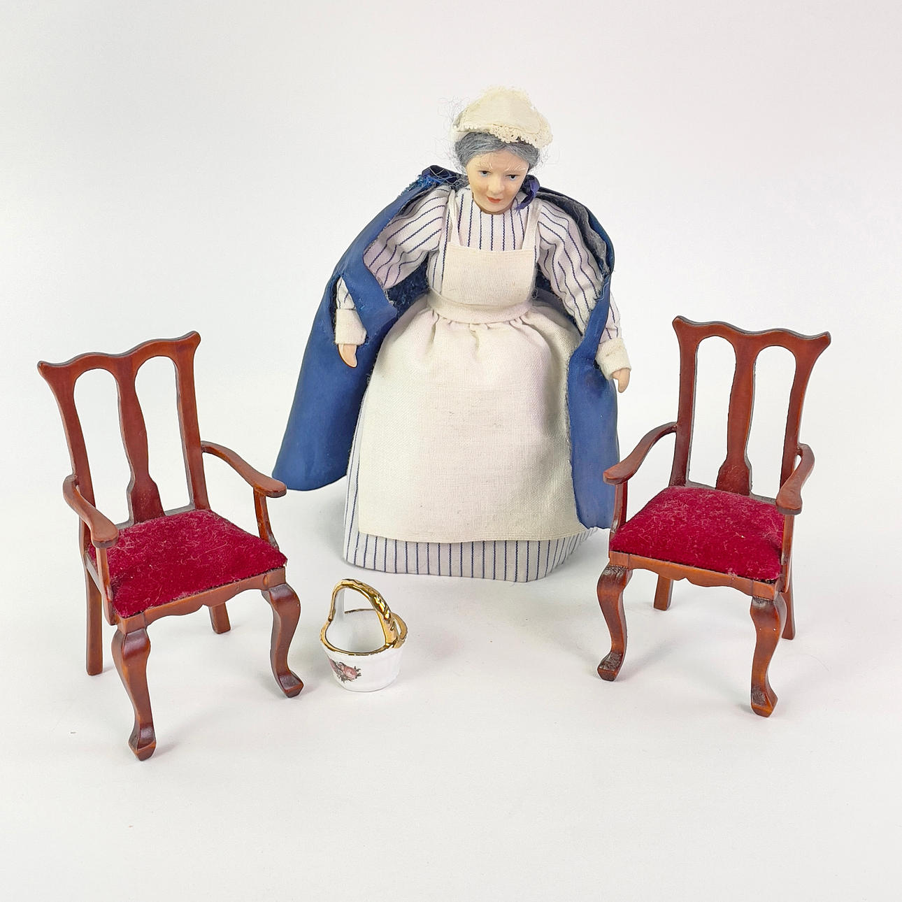 Parti dockmöbler och inredning till dockskåp.